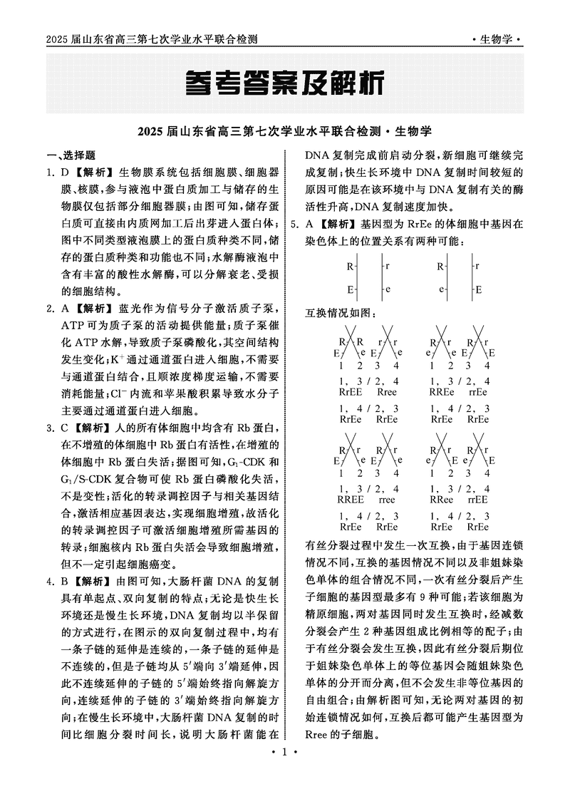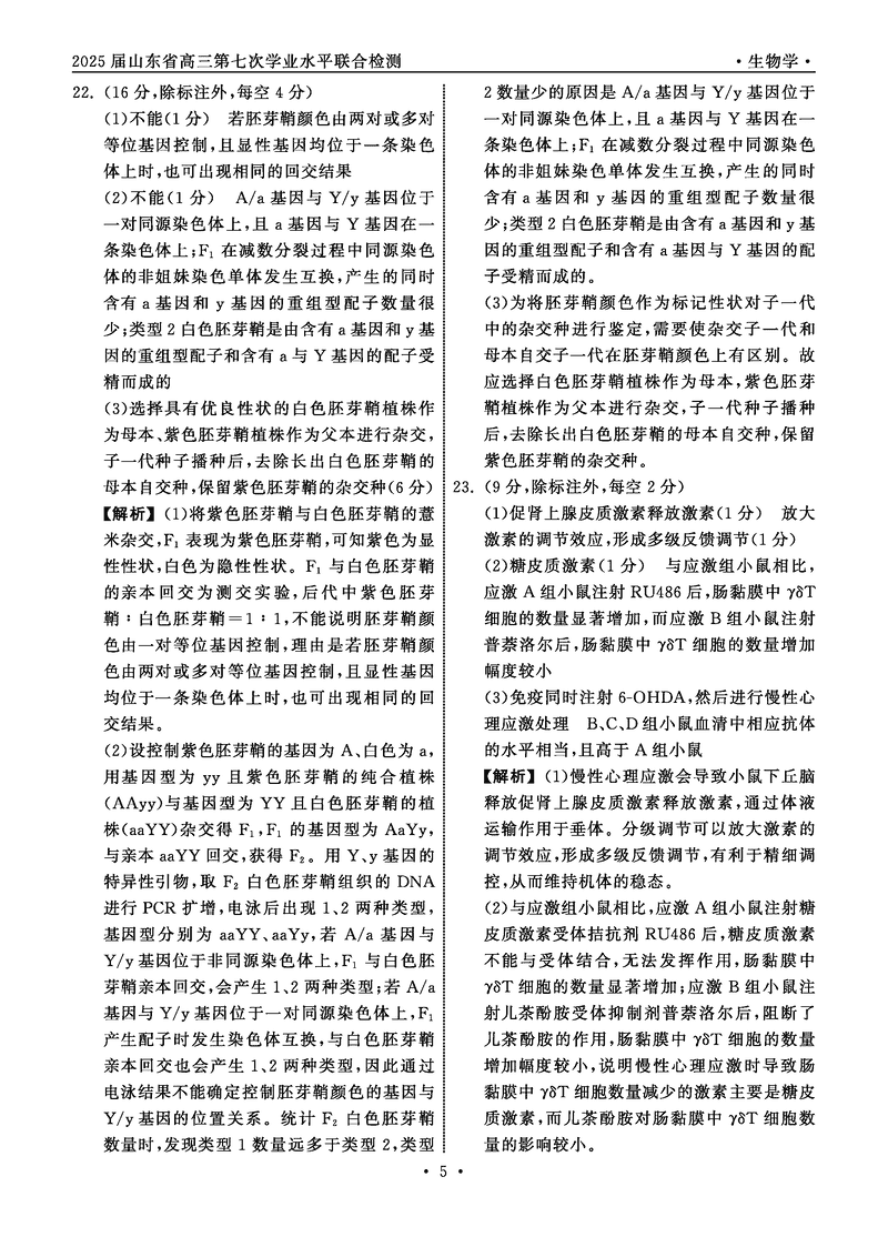 山东省齐鲁名校大联考2025届高三第七次学业水平联合检测生物试题及答案