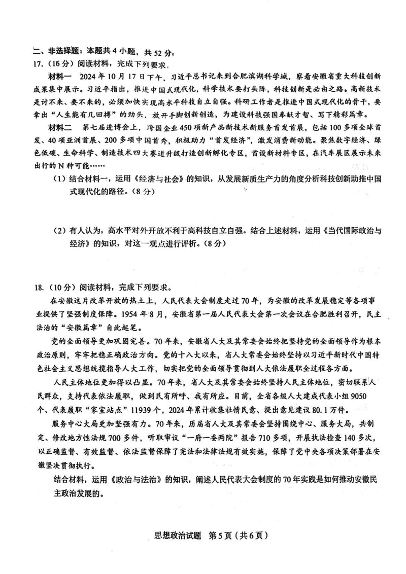 合肥三模2025届高三5月教学质量检测政治试题及答案 时间:2025-05-11 安徽 文综试题 合肥三模2025届高三5月教学质量检测政治考试已于近日开考,为方便考生考后及时查看考试情况,查漏补缺、弥补不足,本文整理了试题答案解析相关信息! 汇总:合肥三模2025届高三5月教学质量检测试题及答案汇总 政治试题及答案解析