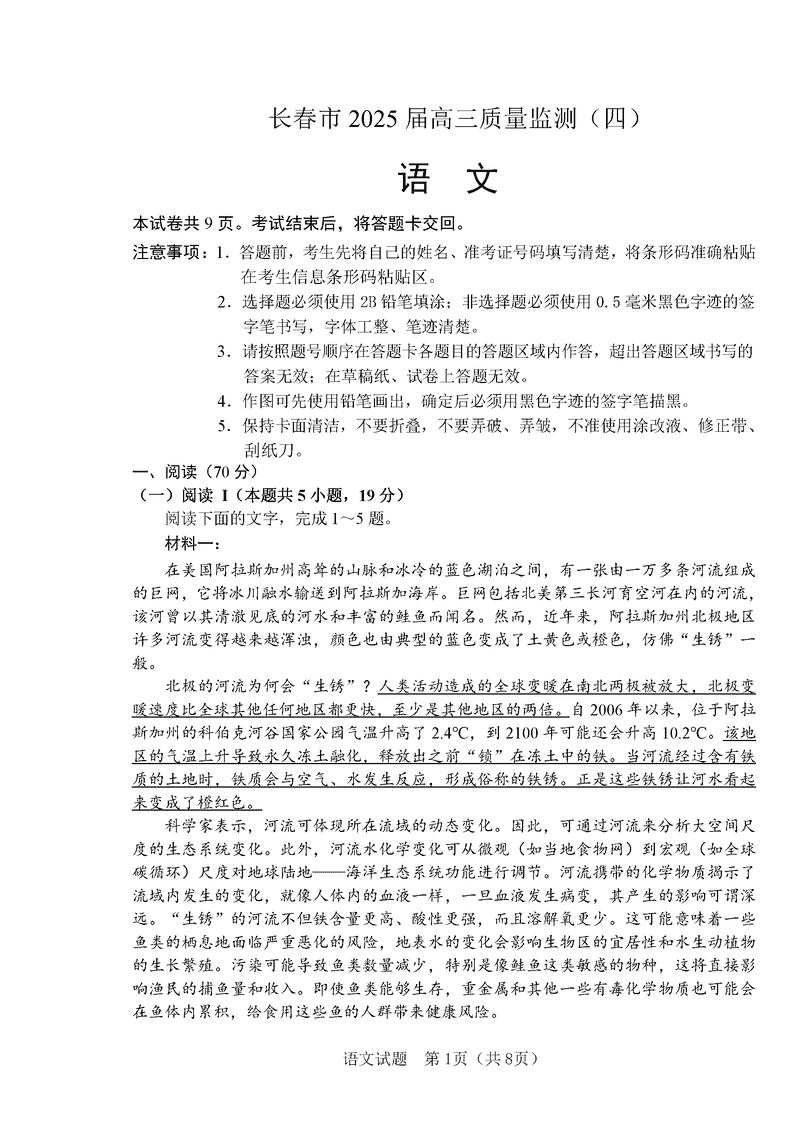 长春四模2025届高三质量监测(四)语文试题及答案 时间:2025-05-11 吉林 语文试题 长春四模2025届高三质量监测(四)语文考试已于近日开考,为方便考生考后及时查看考试情况,查漏补缺、弥补不足,本文整理了试题答案解析相关信息! 汇总:长春四模2025届高三质量监测(四)试题及答案汇总 语文试题及答案解析