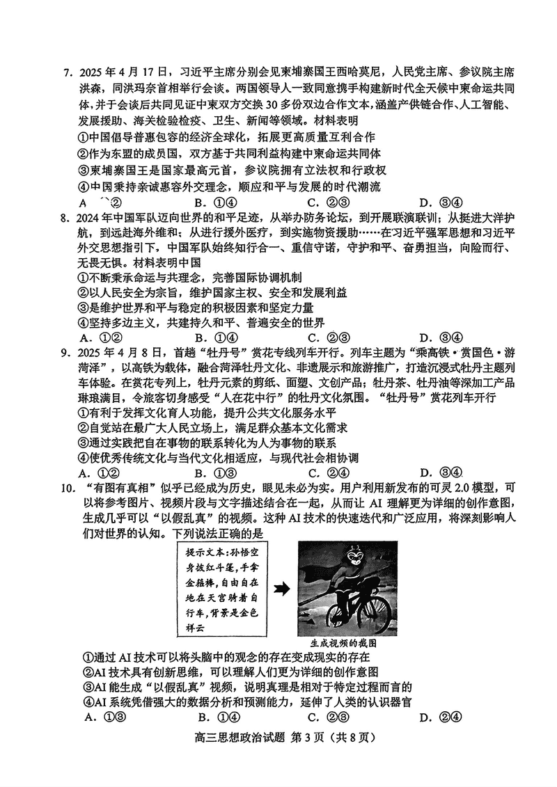 山东省菏泽市2025年高三二模政治试题及答案 时间:2025-05-11 山东 文综试题 山东省菏泽市2025年高三二模政治考试已于近日开考,为方便考生考后及时查看考试情况,查漏补缺、弥补不足,本文整理了试题答案解析相关信息! 汇总:山东省菏泽市2025年高三二模考试试题及答案汇总 政治试题及答案解析
