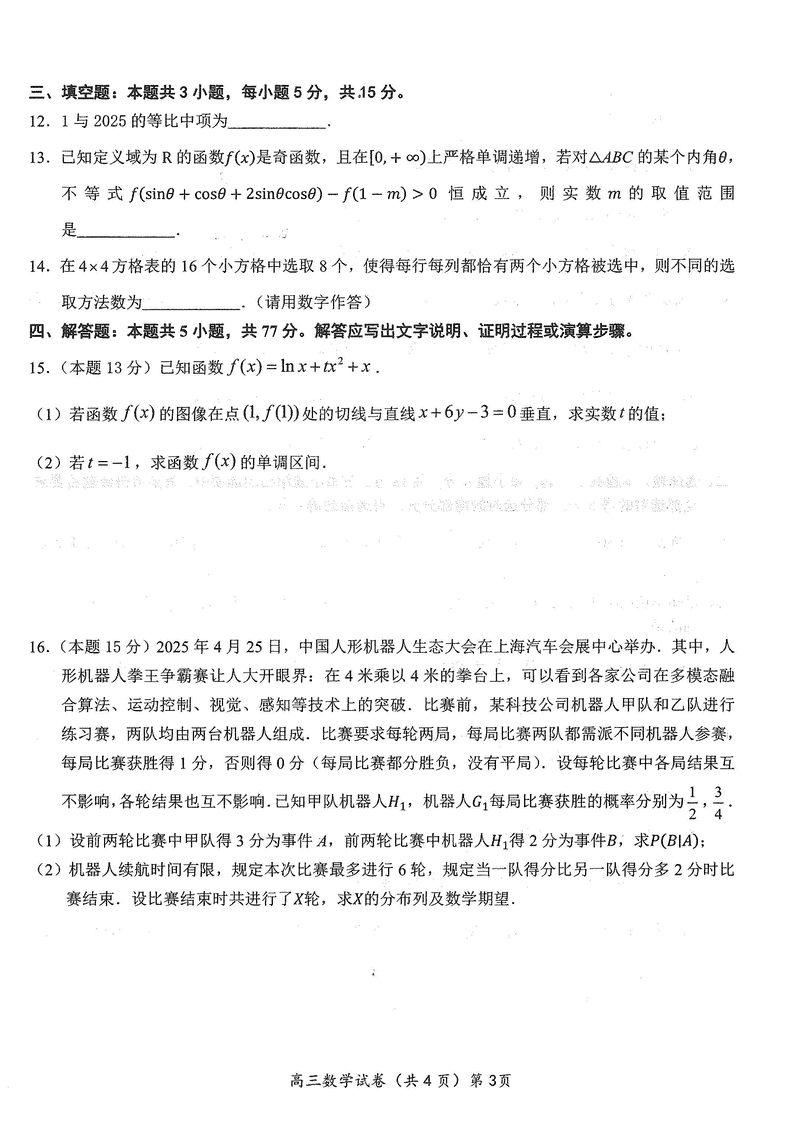 湖北鄂东南2025年春季高三五月模拟考数学试题及答案