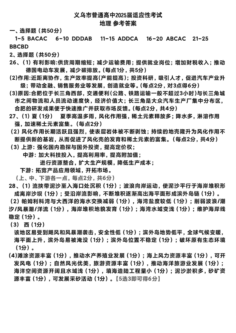 2025年金华市义乌市高三三模地理试题及答案 时间:2025-05-14 浙江 文综试题 2025年金华市义乌市高三三模地理考试已于近日开考,为方便考生考后及时查看考试情况,查漏补缺、弥补不足,本文整理了试题答案解析相关信息! 汇总:2025年金华市义乌市高三三模试题及答案汇总 地理试题及答案解析
