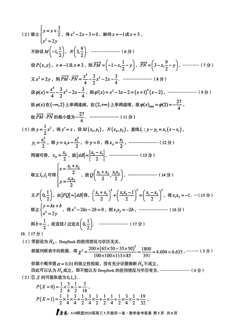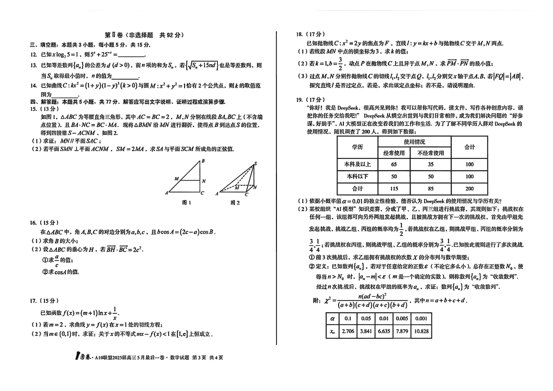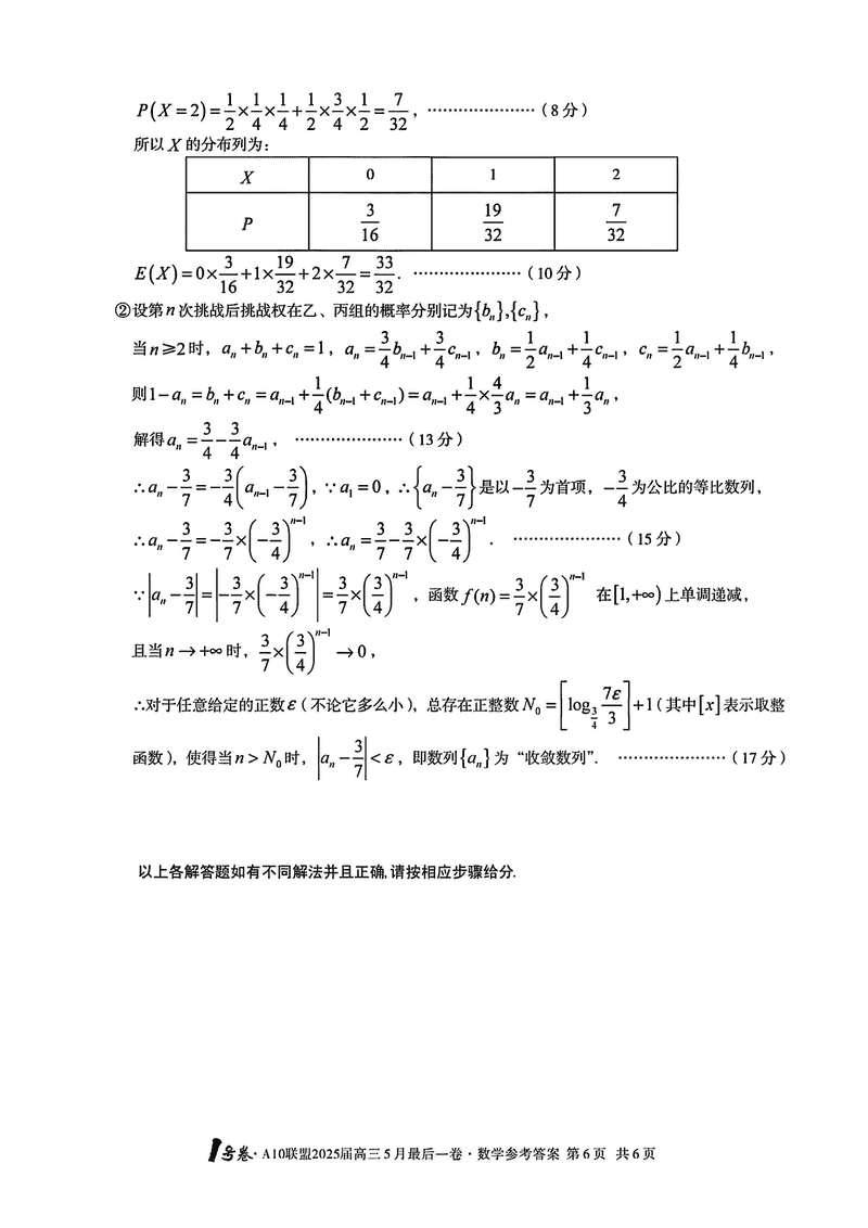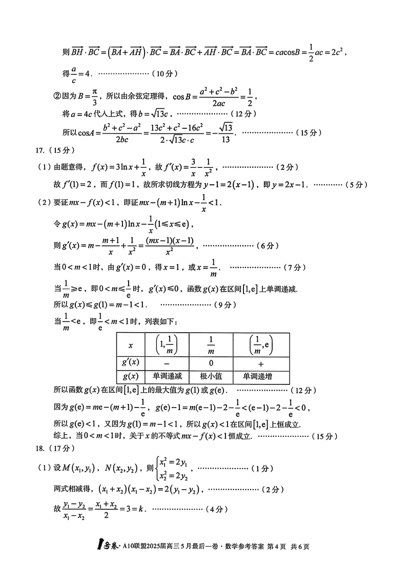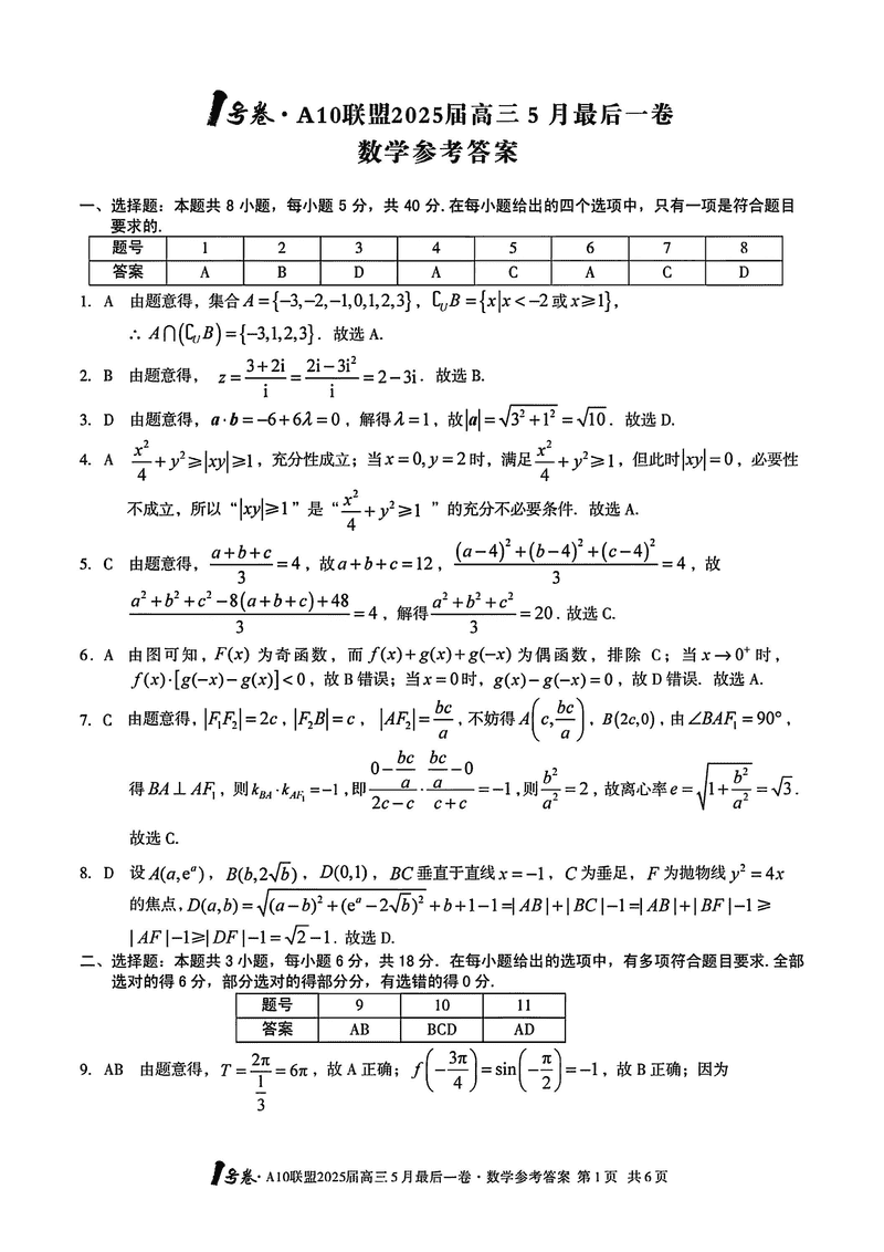 安徽A10联盟2025届高三最后一卷数学试题及答案 时间:2025-05-17 安徽 数学试题 安徽A10联盟2025届高三最后一卷数学考试已于近日开考,为方便考生考后及时查看考试情况,查漏补缺、弥补不足,本文整理了试题答案解析相关信息! 汇总:安徽A10联盟2025届高三最后一卷试题及答案汇总 数学试题及答案解析