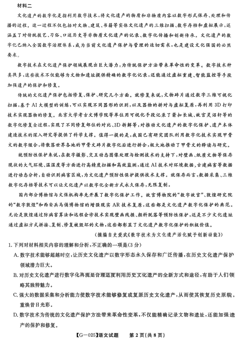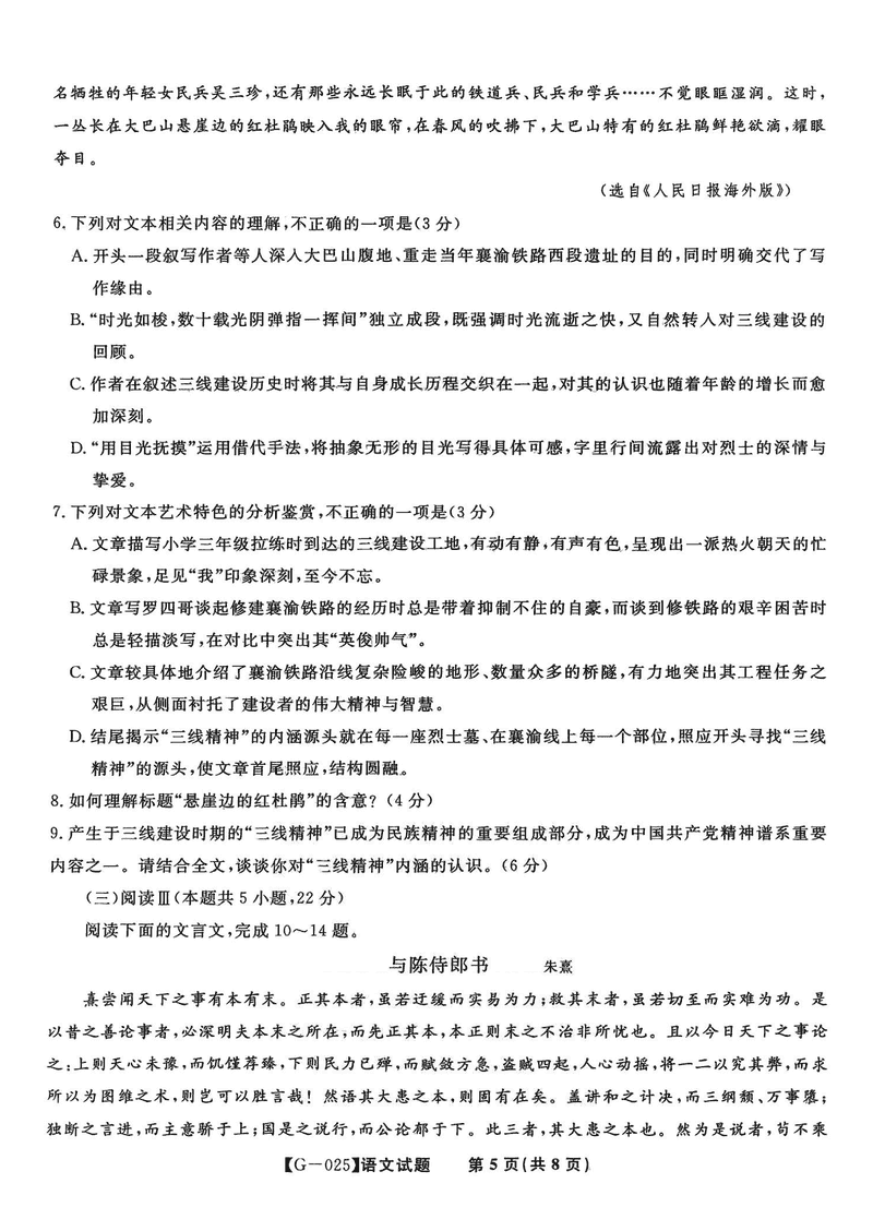 皖江名校联盟2025届高三最后一卷语文试题及答案 时间:2025-05-17 安徽 语文试题 皖江名校联盟2025届高三最后一卷语文考试已于近日开考,为方便考生考后及时查看考试情况,查漏补缺、弥补不足,本文整理了试题答案解析相关信息! 汇总:皖江名校联盟2025届高三最后一卷试题及答案汇总 语文试题及答案解析