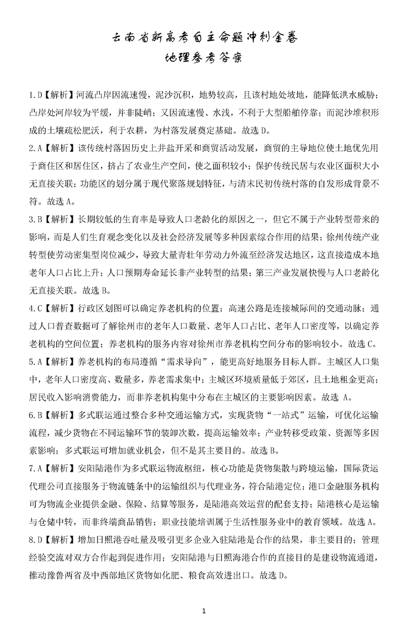 2025年云南省新高考自主命题冲刺金卷地理试题及答案 时间:2025-05-18 云南 文综试题 2025年云南省新高考自主命题冲刺金卷地理考试已于近日开考,为方便考生考后及时查看考试情况,查漏补缺、弥补不足,本文整理了试题答案解析相关信息! 汇总:2025年云南省新高考自主命题冲刺金卷试题及答案汇总 地理试题及答案解析