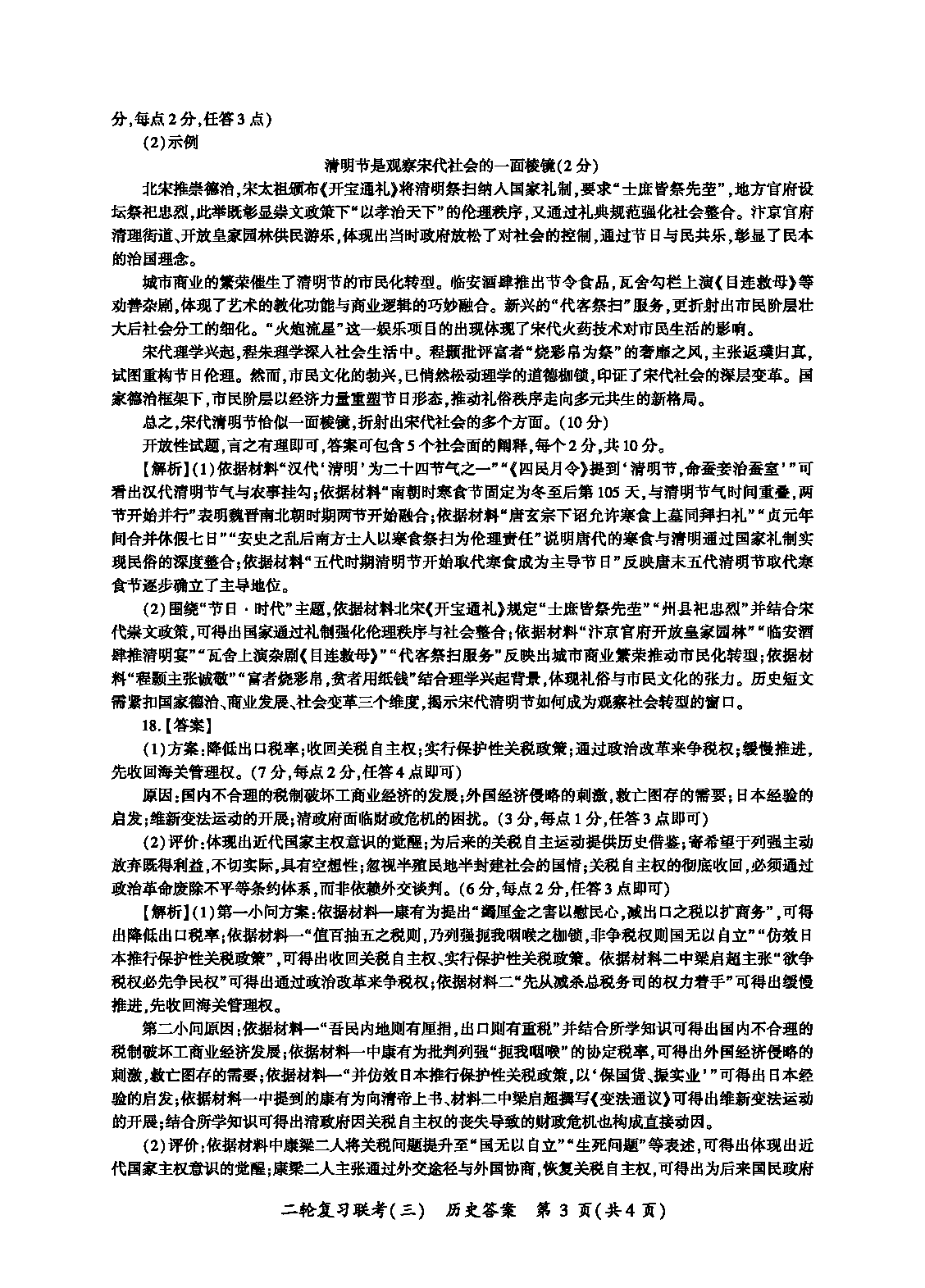 安徽百师联盟2025届高三二轮复习联考(三)历史试题及答案