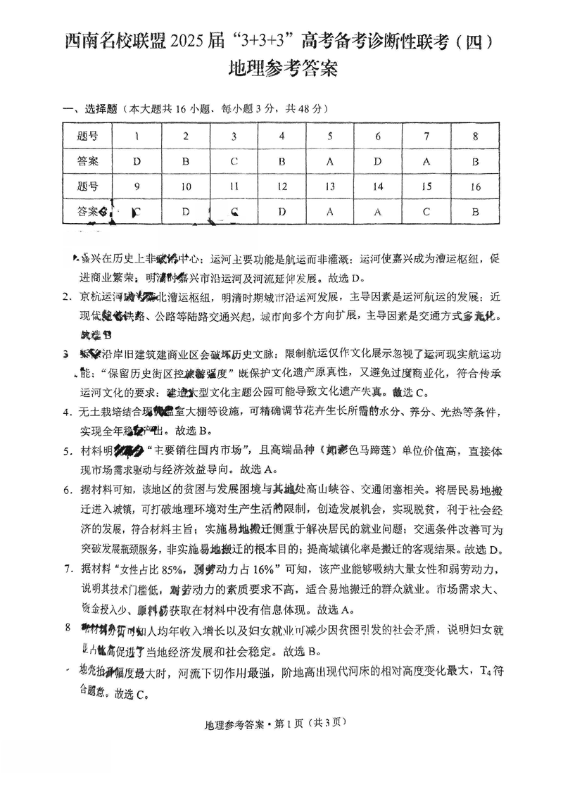 西南名校联盟2025届“3+3+3”高考备考诊断性联考(四)地理考试已于近日开考,为方便考生考后及时查看考试情况,查漏补缺、弥补不足,本文整理了试题答案解析相关信息!