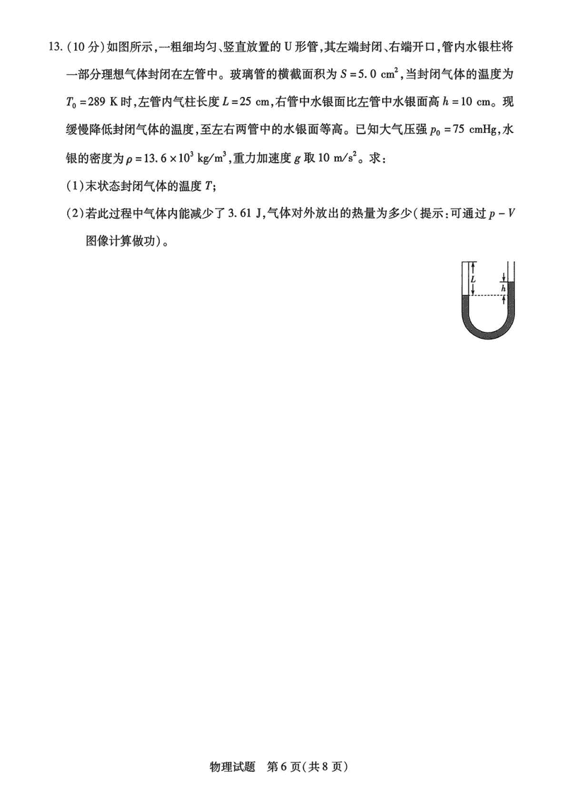 安徽天一大联考2025届高三最后一卷物理试题及答案