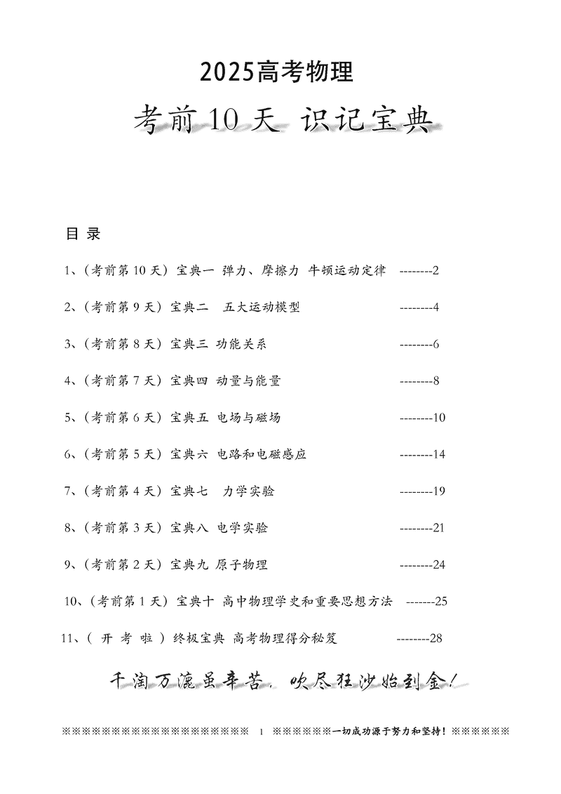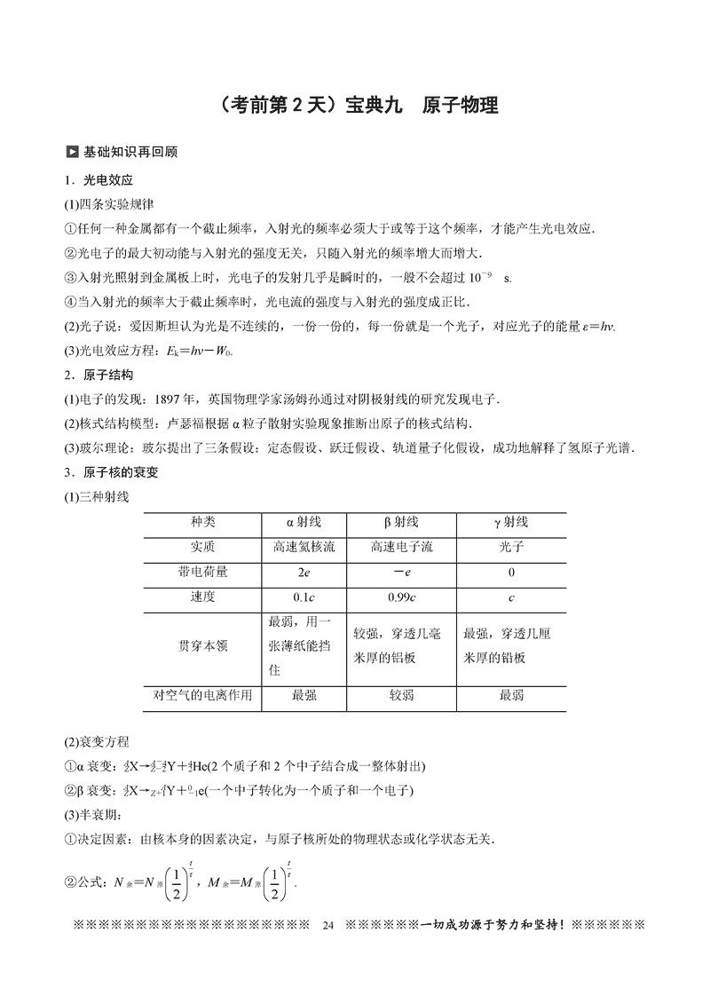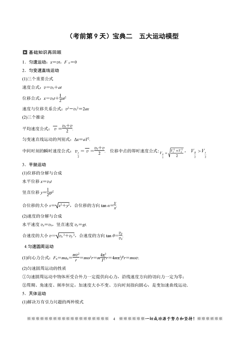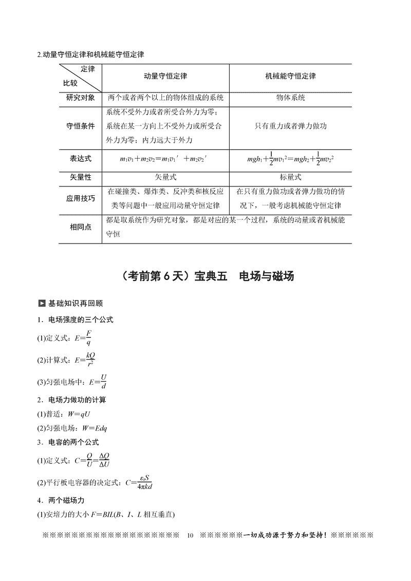 2025高考物理考前必记知识点