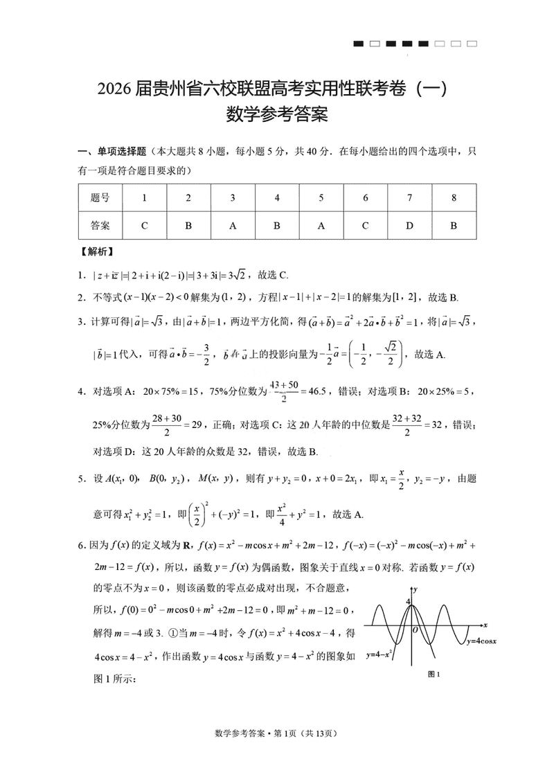 2026届贵州省六校联盟高考实用性联考卷(一)数学考试已于近日开考,为方便考生考后及时查看考试情况,查漏补缺、弥补不足,本文整理了试题答案解析相关信息!