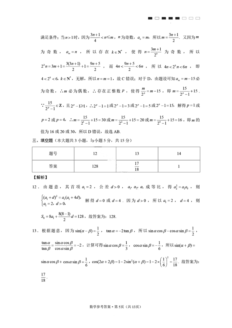 数学试题及答案解析
