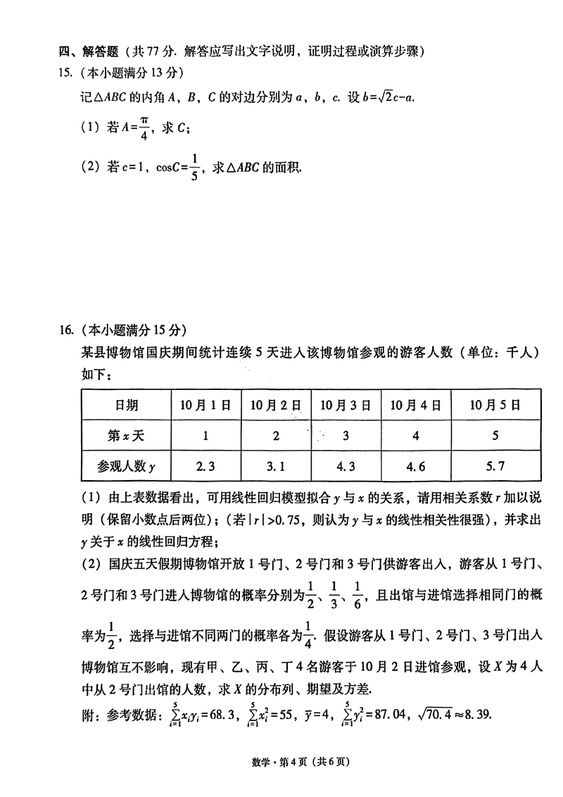 2026届贵州省六校联盟高考实用性联考卷(一)数学试题及答案