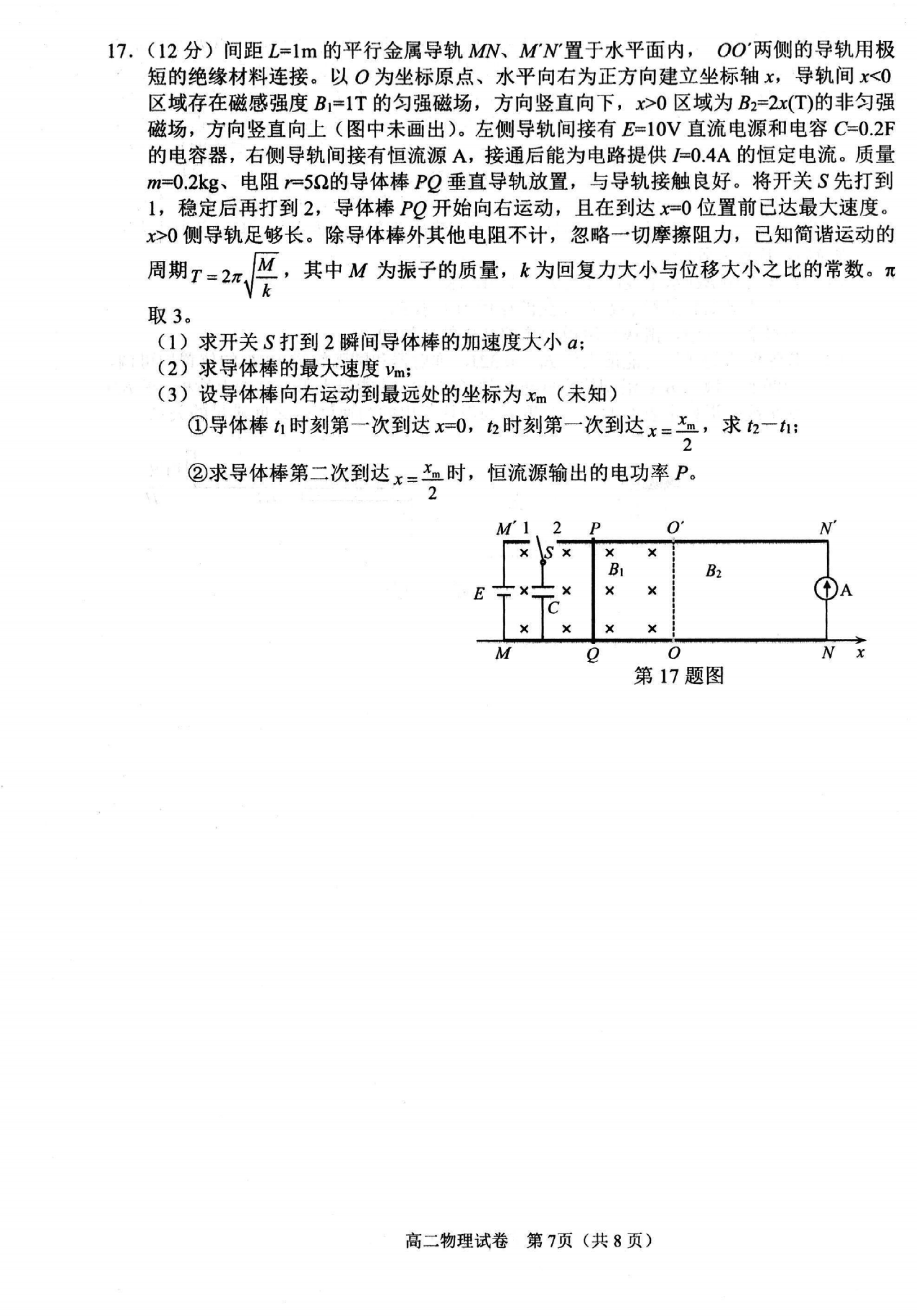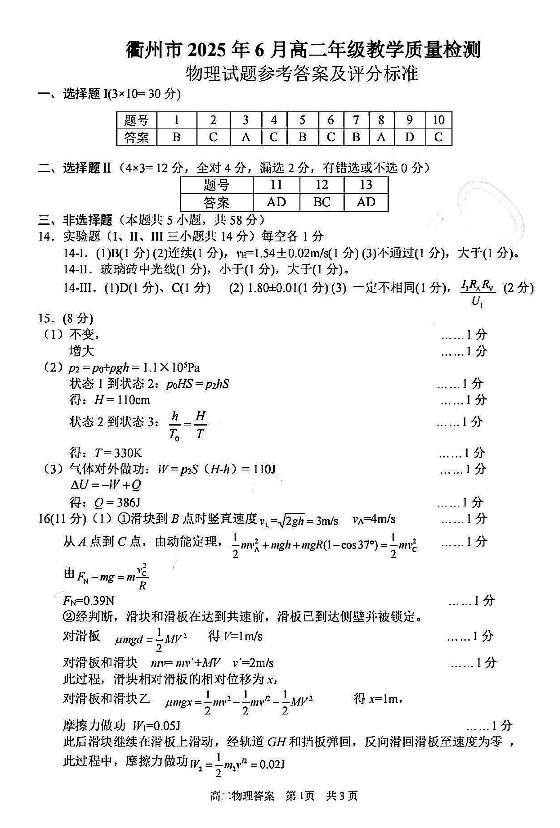 衢州市2025年6月高二下学期教学质量检测物理试题及答案 时间:2025-06-22 浙江 高中物理 浙江省衢州市2025年6月高二下学期教学质量检测物理考试已于近日开考,为方便考生考后及时查看考试情况,查漏补缺、弥补不足,本文整理了试题答案解析相关信息! 物理试题及答案解析