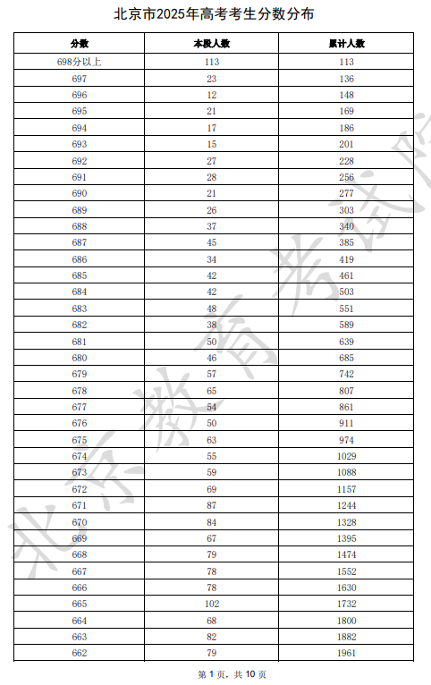 北京2025高考成绩一分一段表及位次排名查询(完整版)