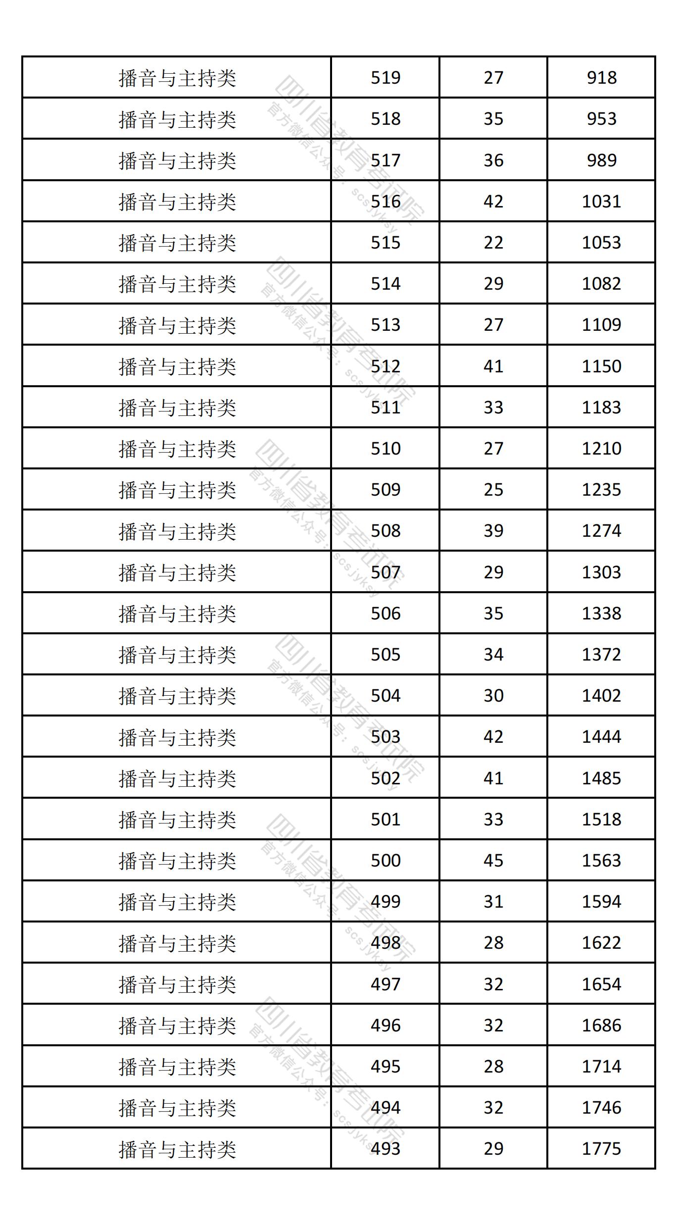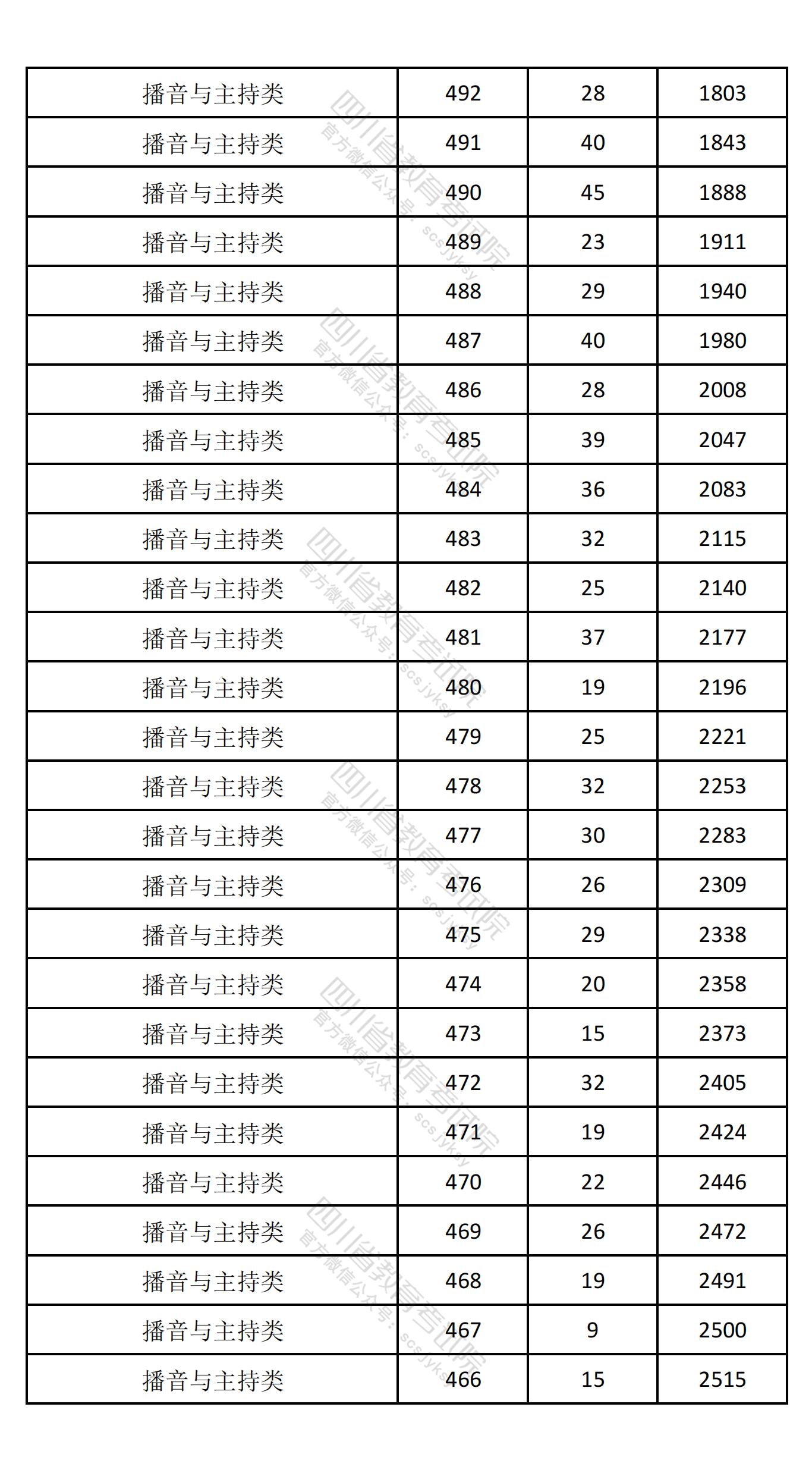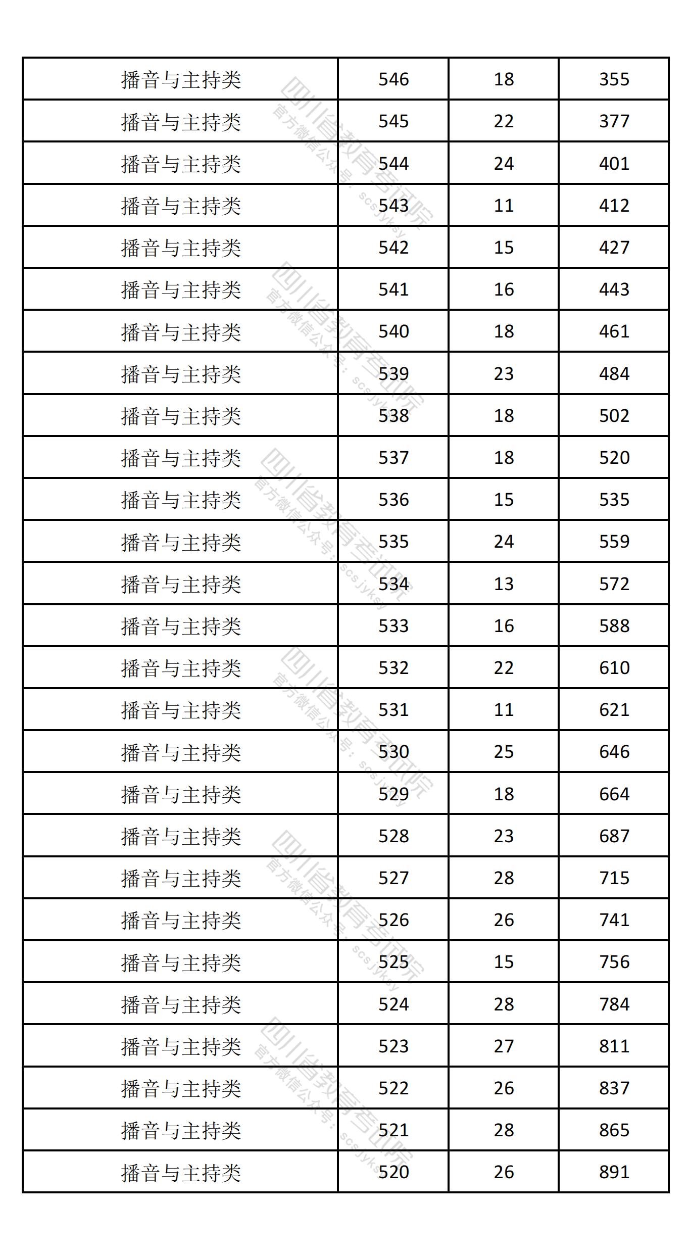 四川省2025年高考播音与主持类综合成绩一分一段排名统计表