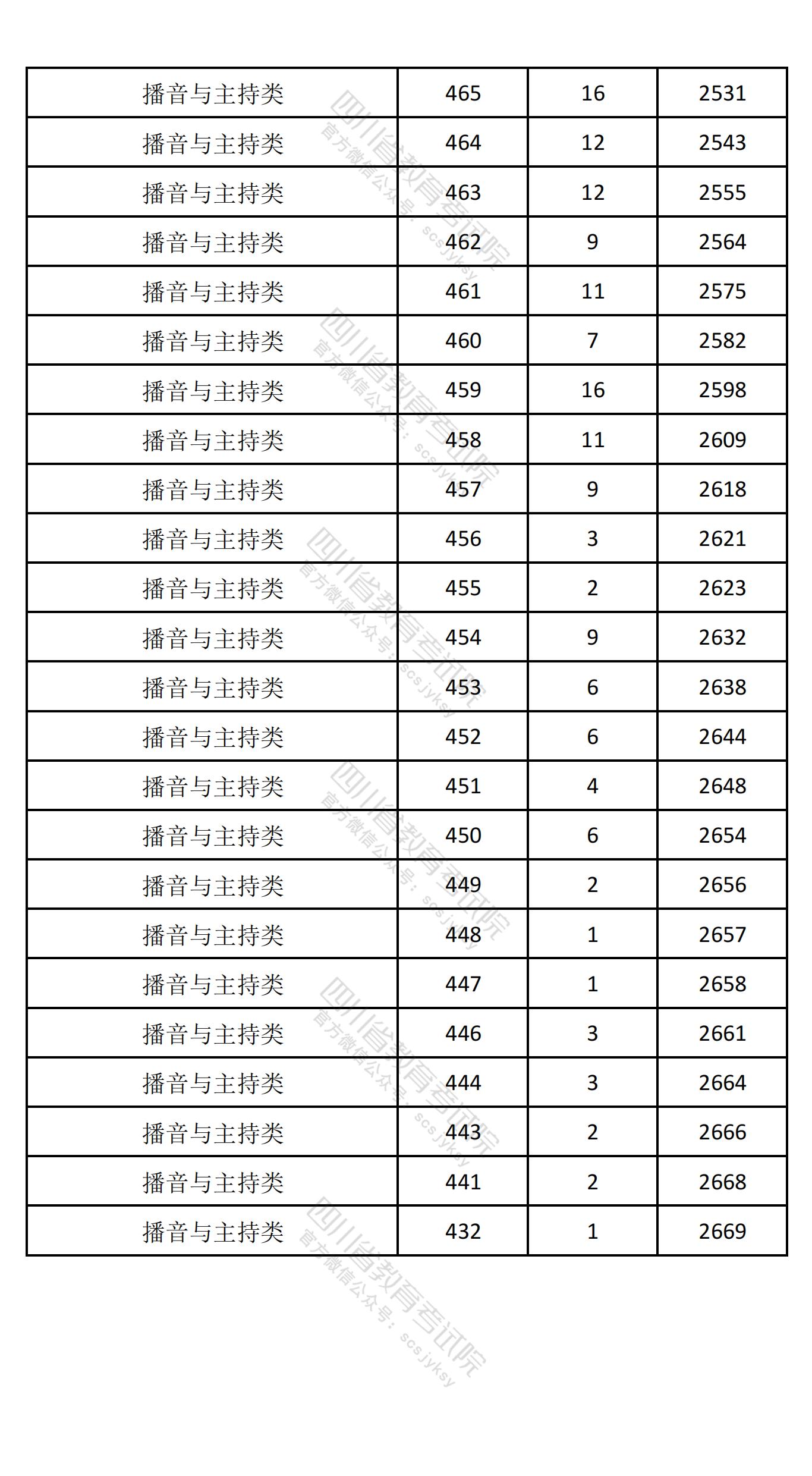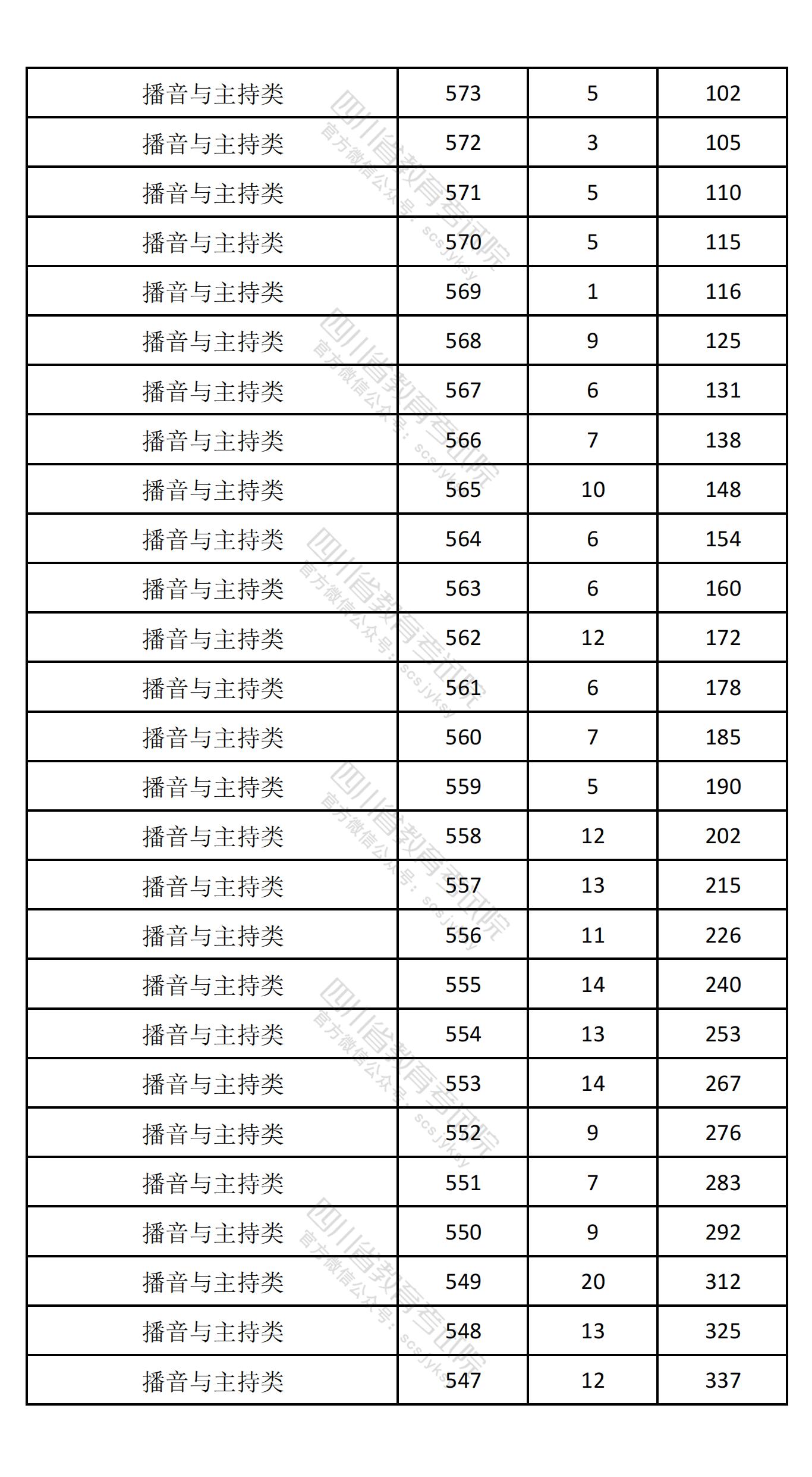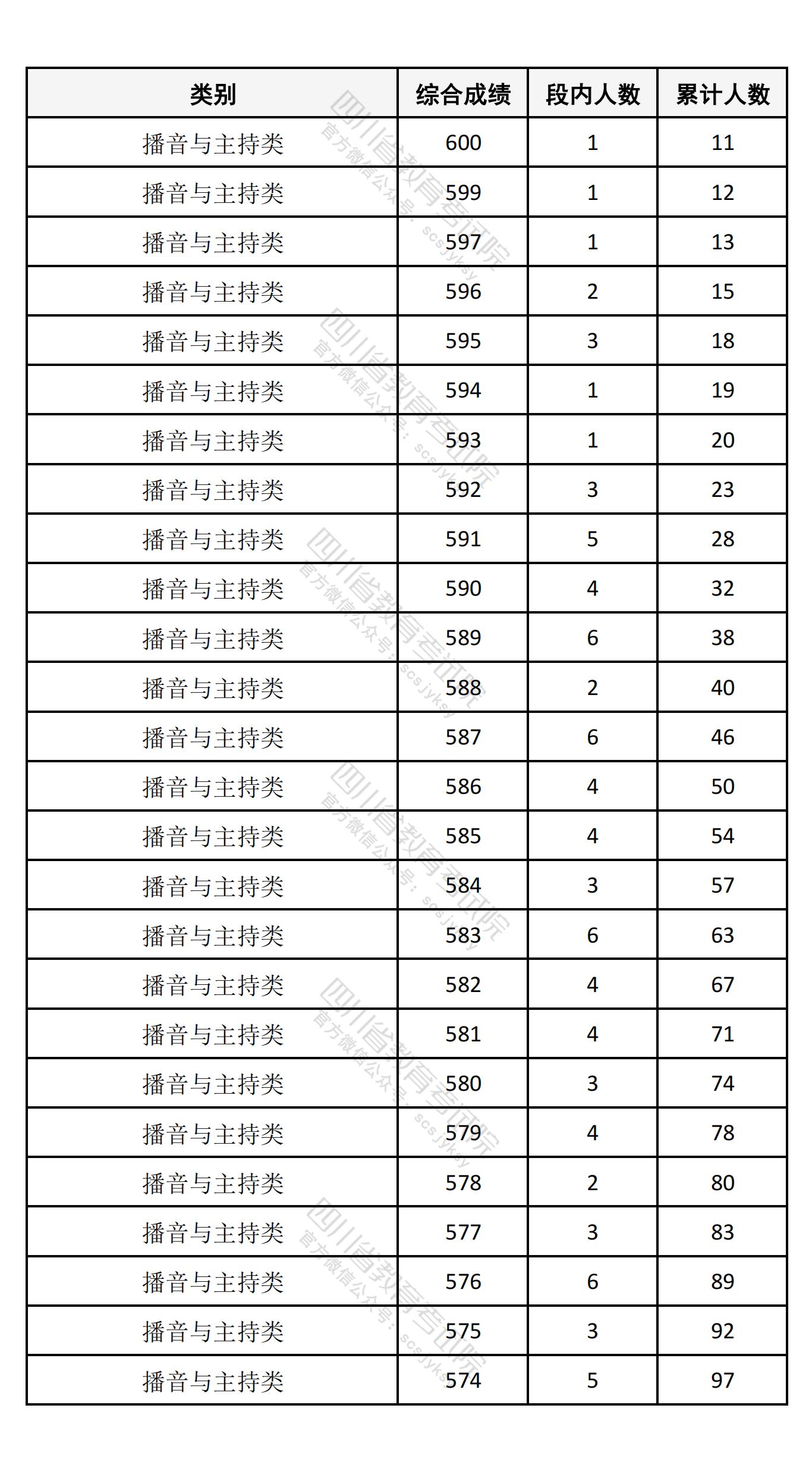 四川省2025年高考播音与主持类综合成绩一分一段排名统计表