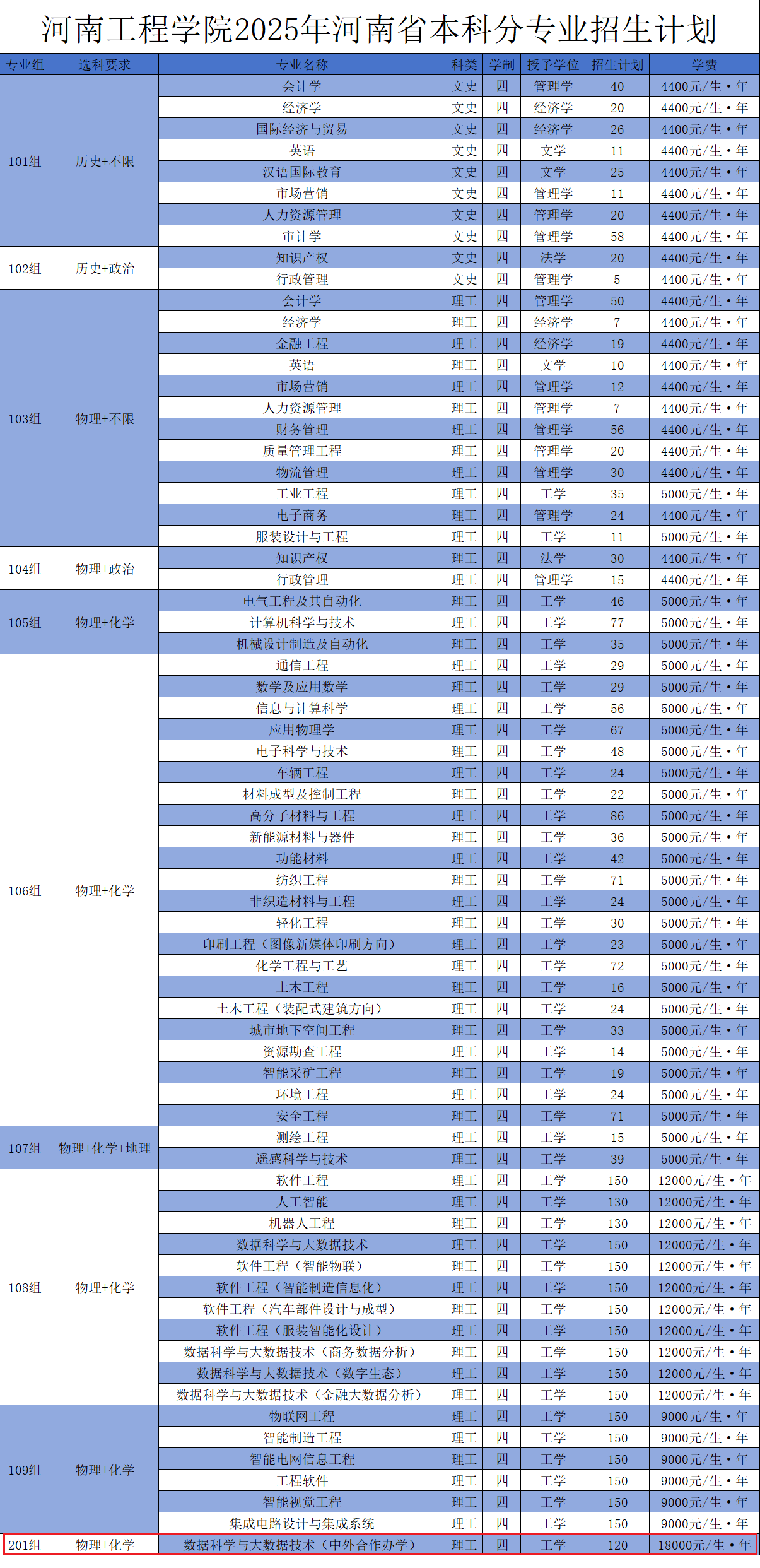 2025河南工程学院中外合作办学招生计划及各专业招生人数