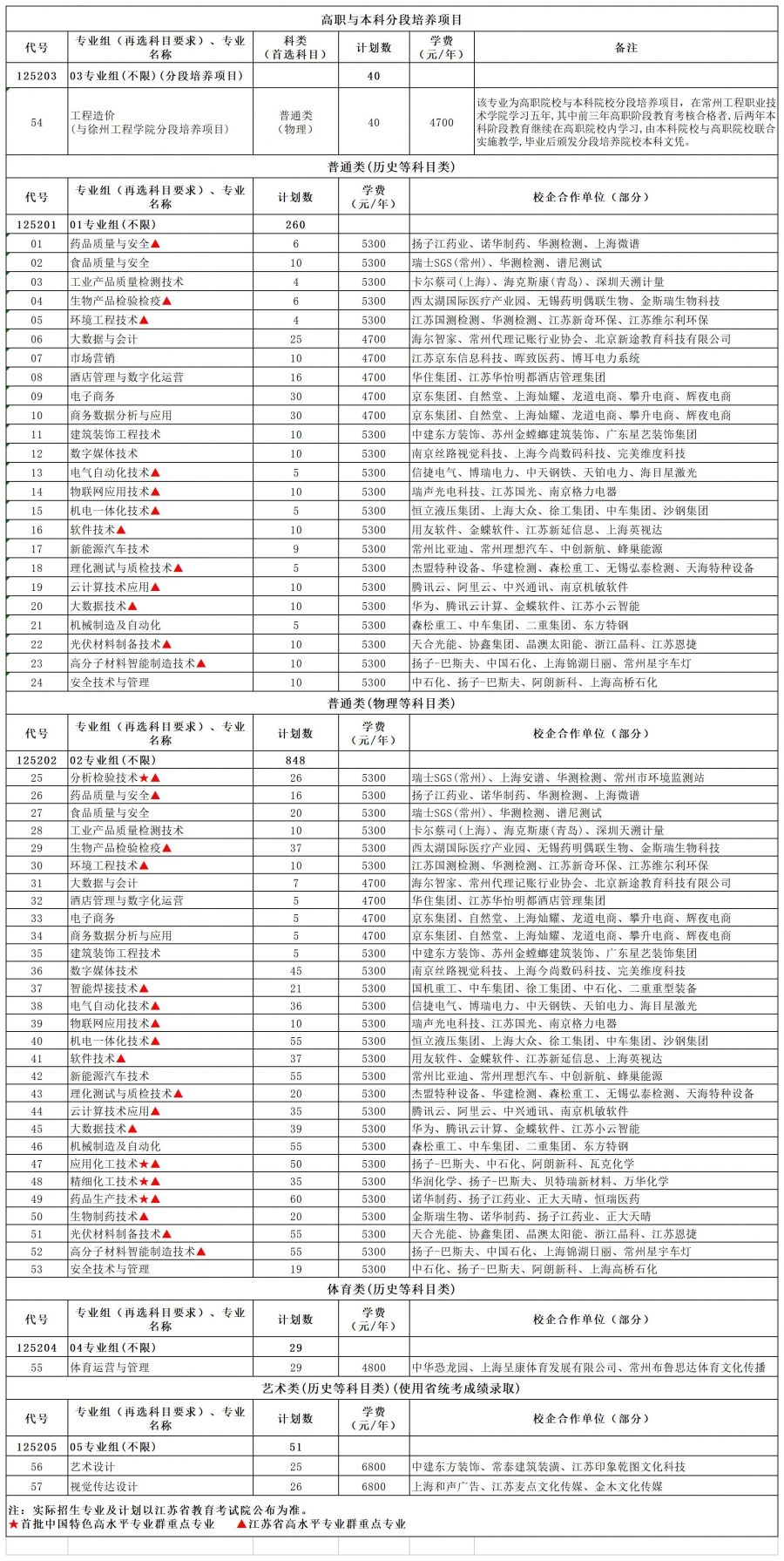 2025常州工程职业技术学院招生计划及各专业招生人数