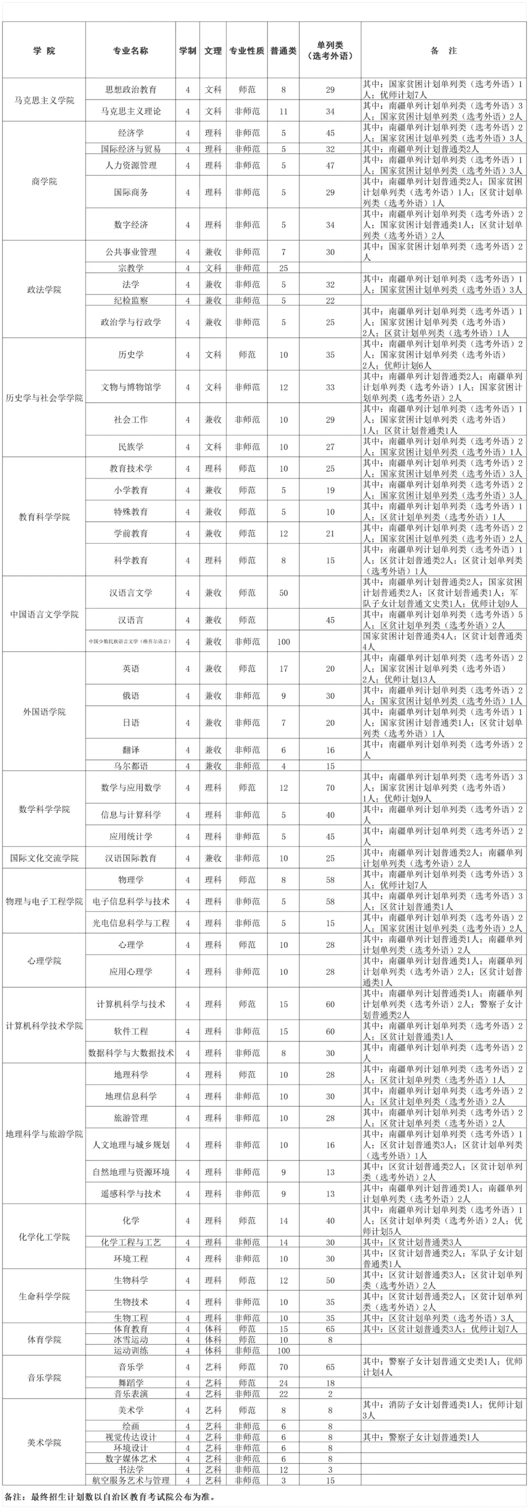 本文为大家整理的是新疆师范大学2025年招生计划,主要包含招生专业、招生类别、各专业招生人数等信息,希望对大家有所帮助,如有变动或异议,请以各省市教育考试院或学校公布的信息为准。