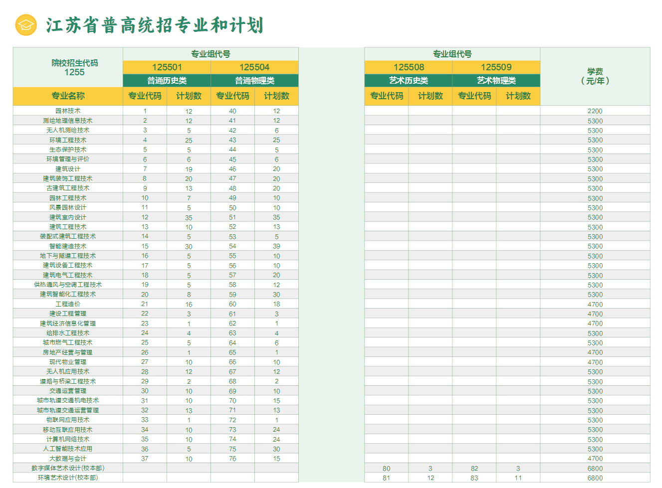2025江苏城乡建设职业学院招生计划及各专业招生人数