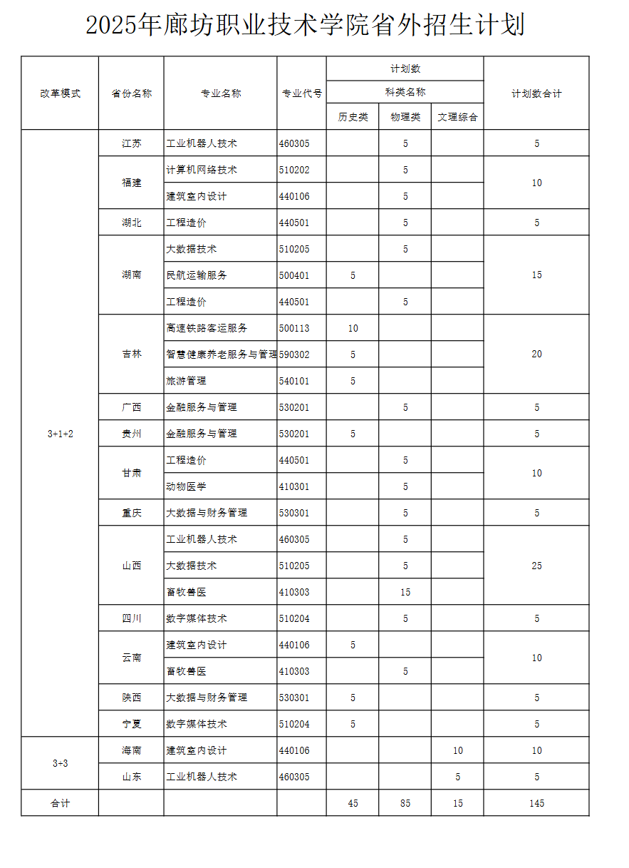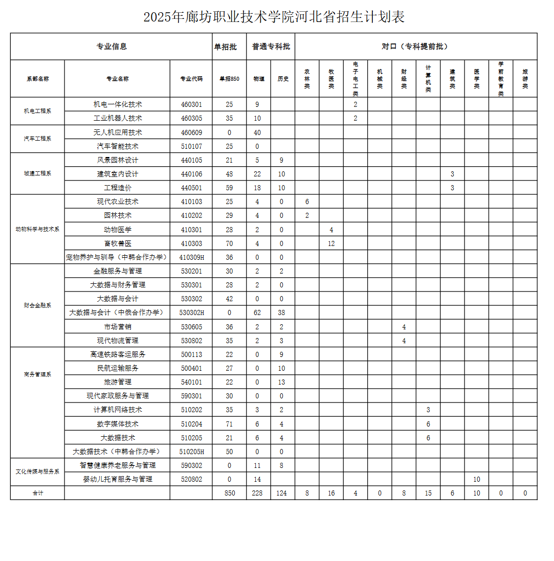 2025廊坊职业技术学院招生计划及各专业招生人数