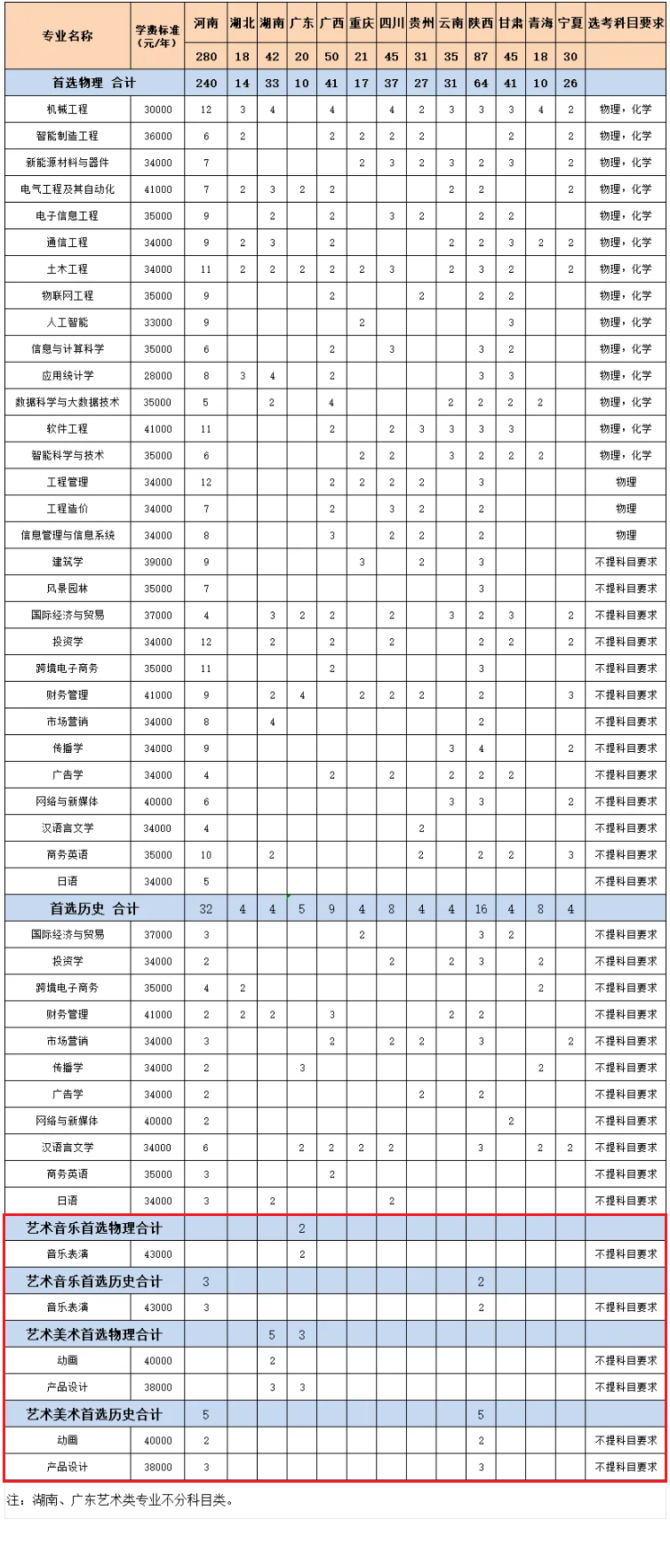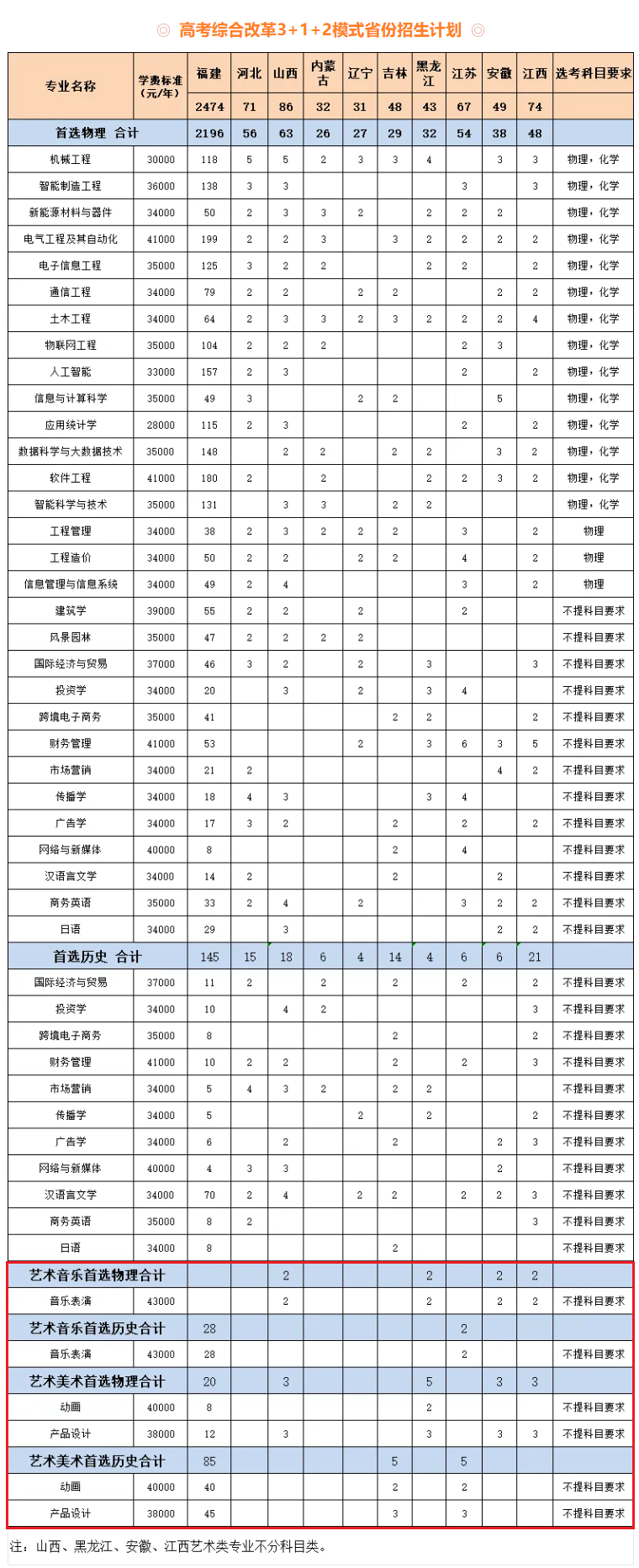 2025厦门工学院艺术类招生计划及各专业招生人数