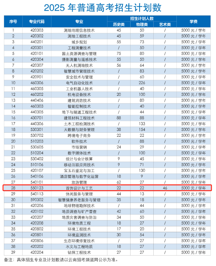 2025云南国土资源职业学院艺术类招生计划及各专业招生人数