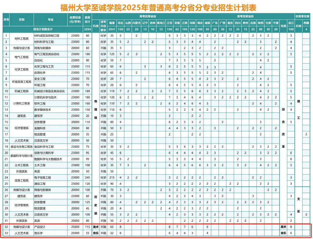 2025福州大学至诚学院艺术类招生计划及各专业招生人数