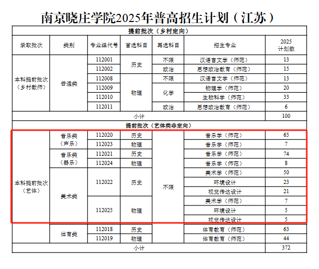 2025南京晓庄学院艺术类招生计划及各专业招生人数