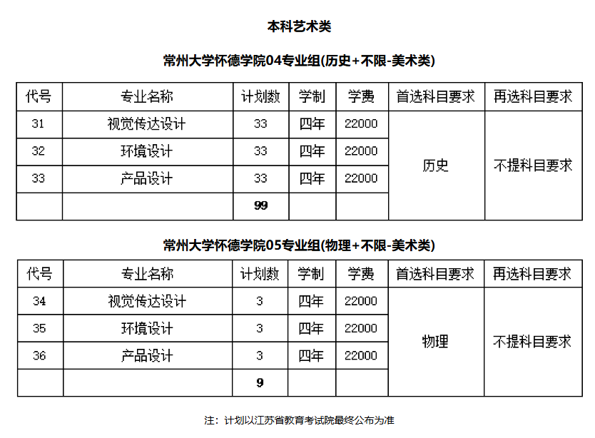 2025常州大学怀德学院艺术类招生计划及各专业招生人数