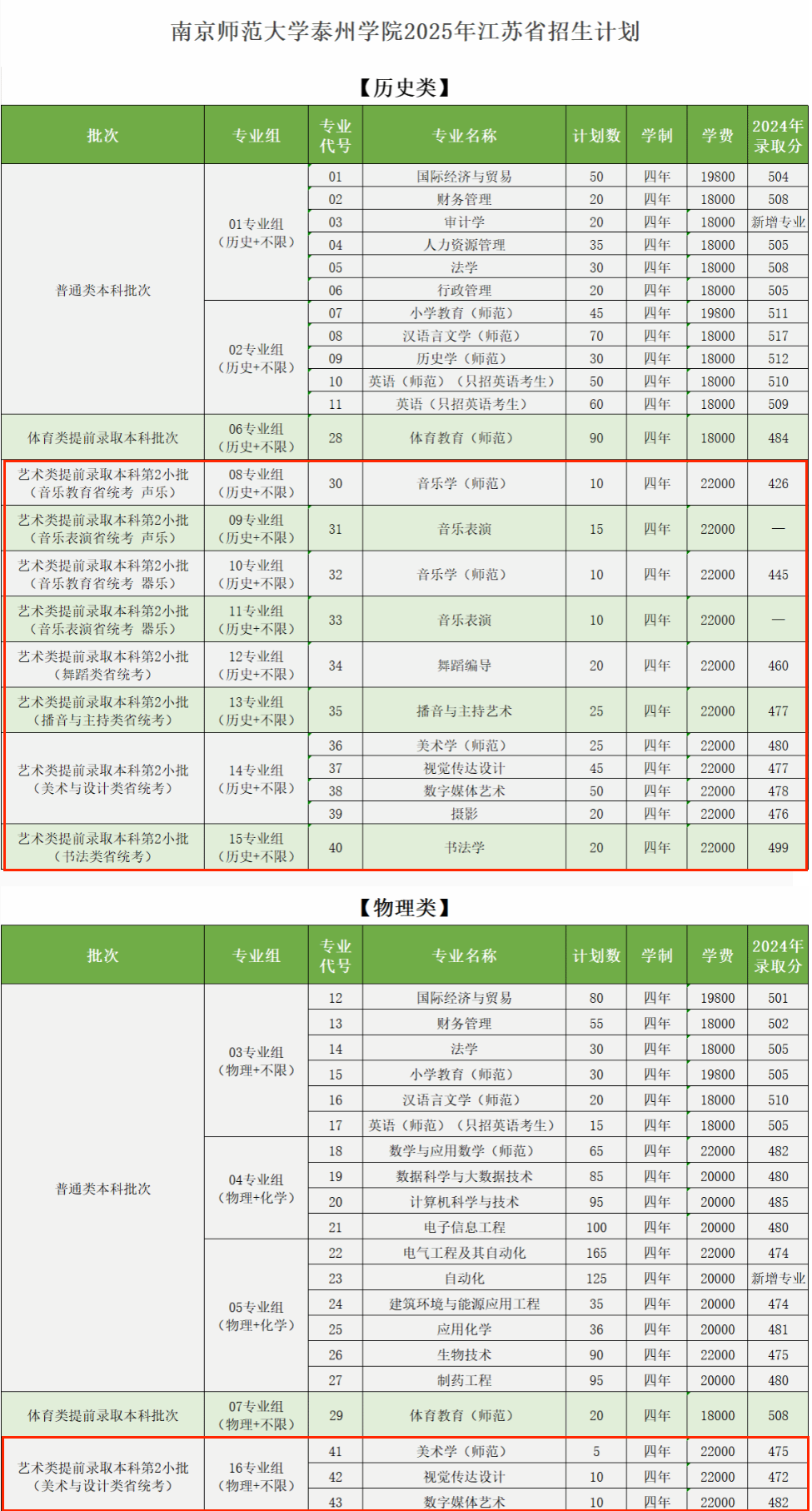 2025南京师范大学泰州学院艺术类招生计划及各专业招生人数