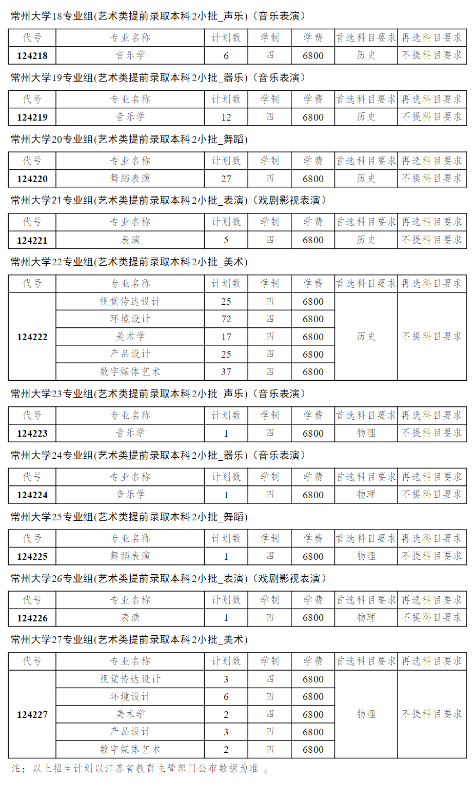 常州大学2025年江苏省本科生招生计划-艺术类
