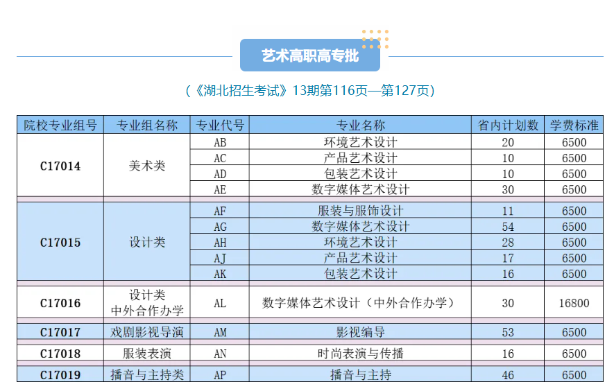 本文为大家整理的是武汉职业技术大学2025艺术类招生计划,主要包含招生专业、各专业招生人数等信息,希望对大家有所帮助,如有变动或异议,请以各省市教育考试院或学校公布的信息为准。