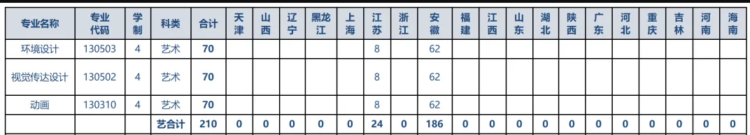 合肥城市学院2025年分省(市)分专业计划投放统计表(艺术类)