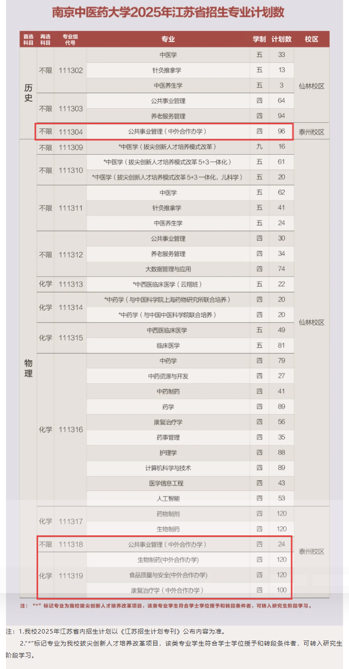 2025南京中医药大学中外合作办学招生计划及各专业招生人数