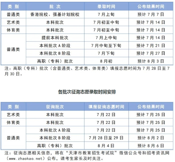 根据获取到的消息可知,天津2025年高考志愿各批次录取时间安排还暂未公布,不过,下面为大家找来了去年天津高考各批次录取时间安排作为参考。