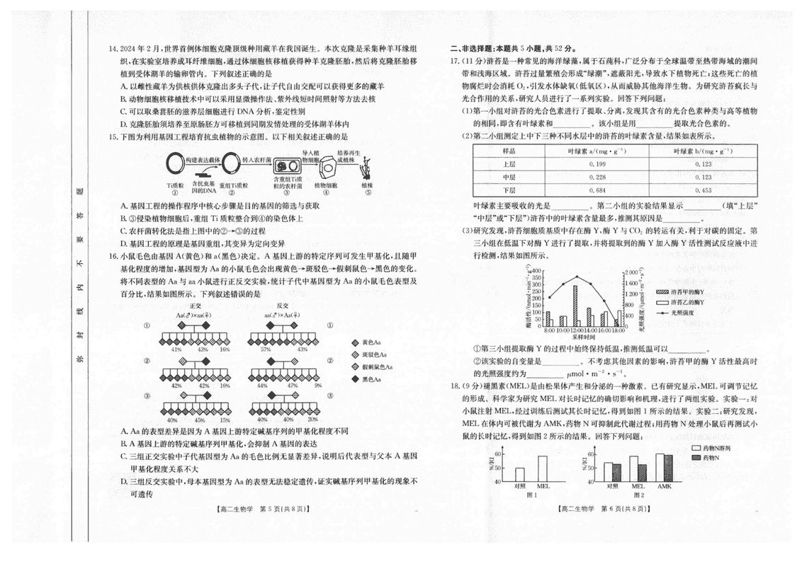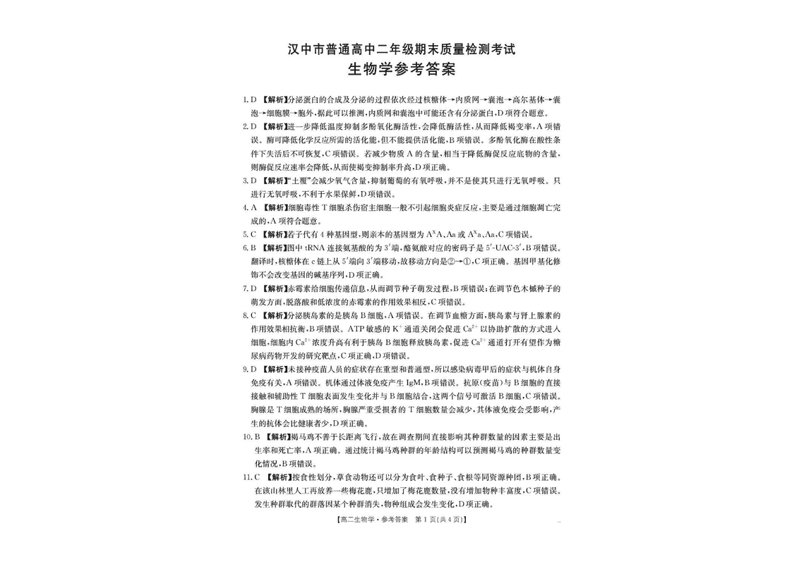 陕西汉中市2024-2025学年高二下学期期末生物考试已于近日开考,为方便考生考后及时查看考试情况,查漏补缺、弥补不足,本文整理了试题答案解析相关信息!