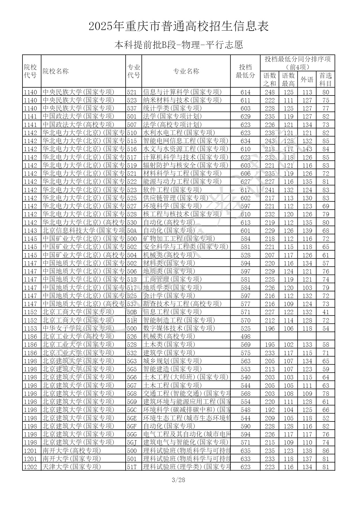 重庆2025年普通类本科提前批录取信息表已公布,具体内容如下: