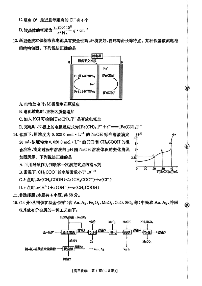 皖西南高中振兴发展联盟2026届高三起点考化学试题及答案