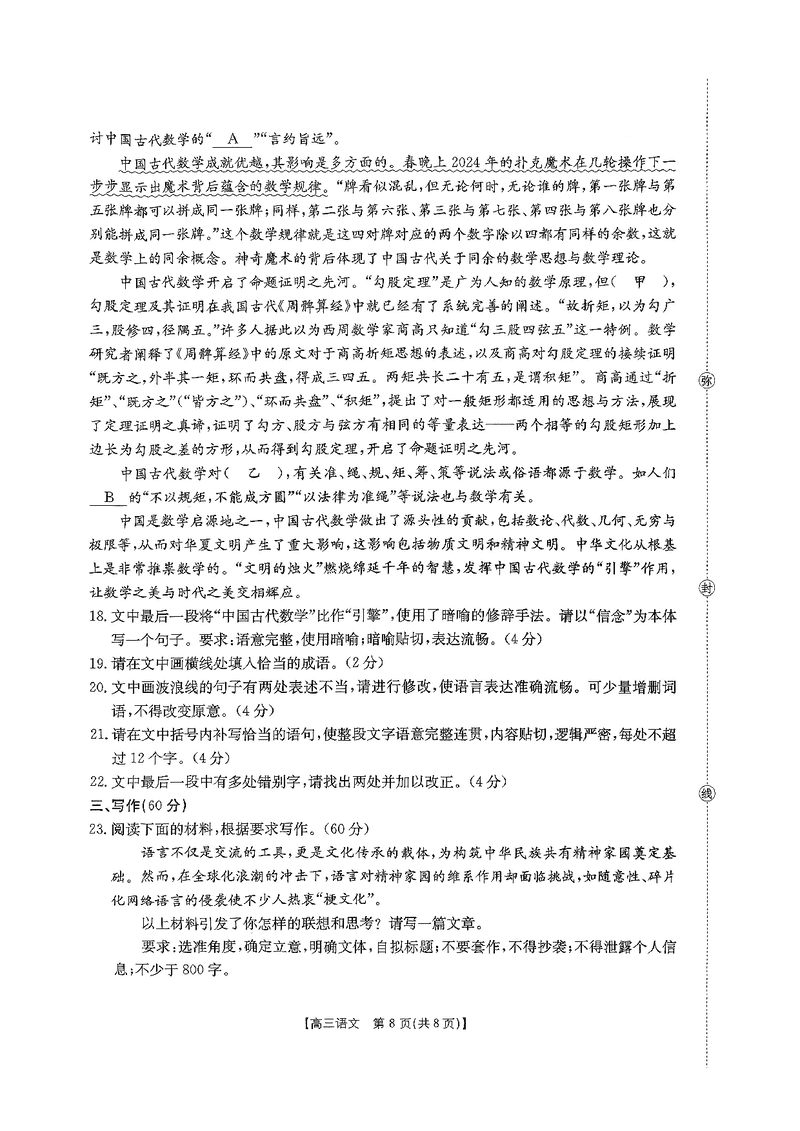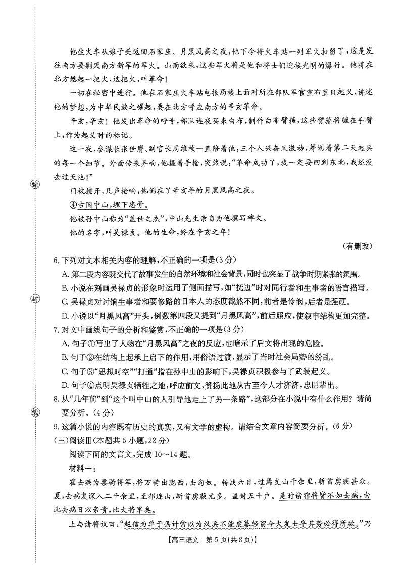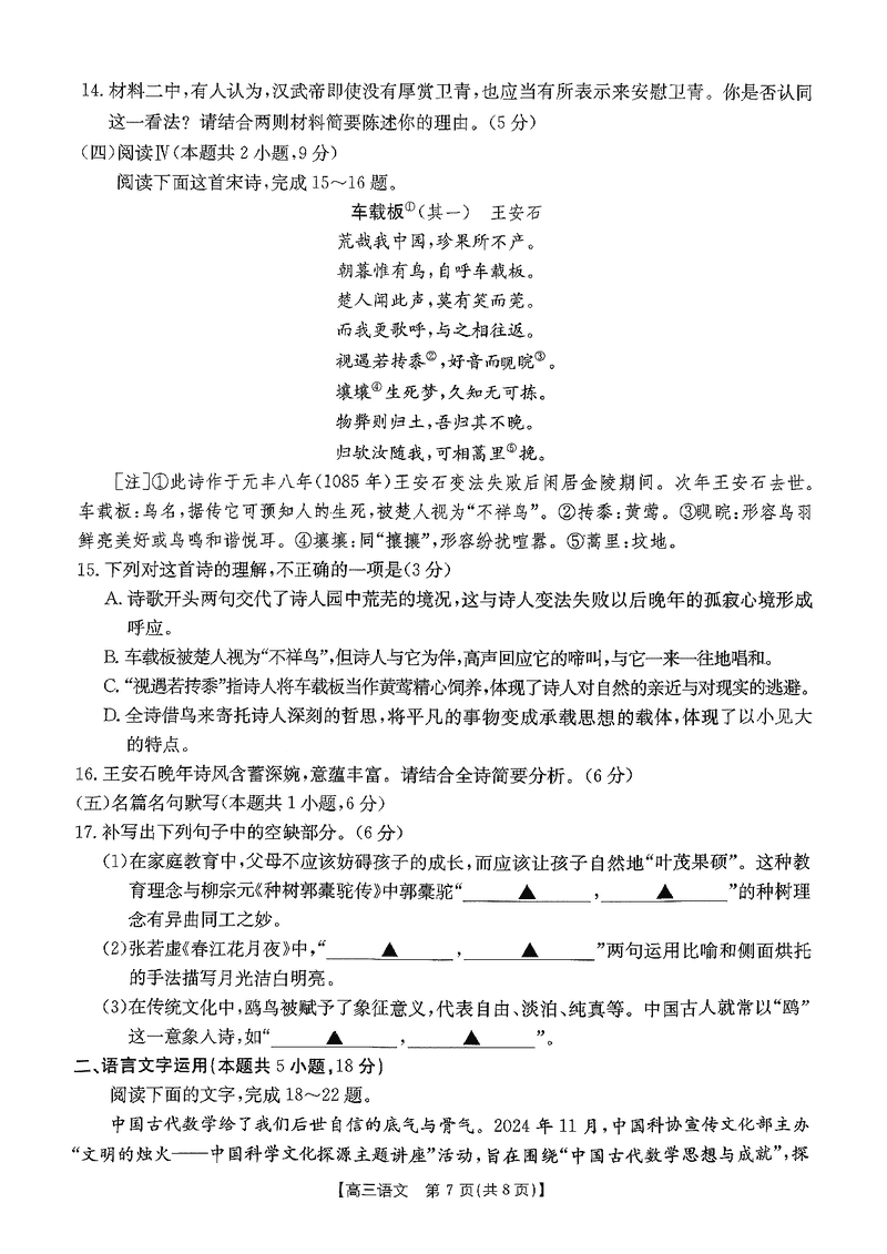 皖西南高中振兴发展联盟2026届高三起点考语文试题及答案