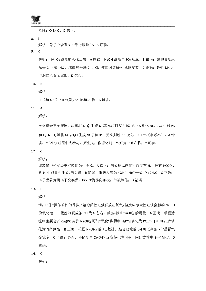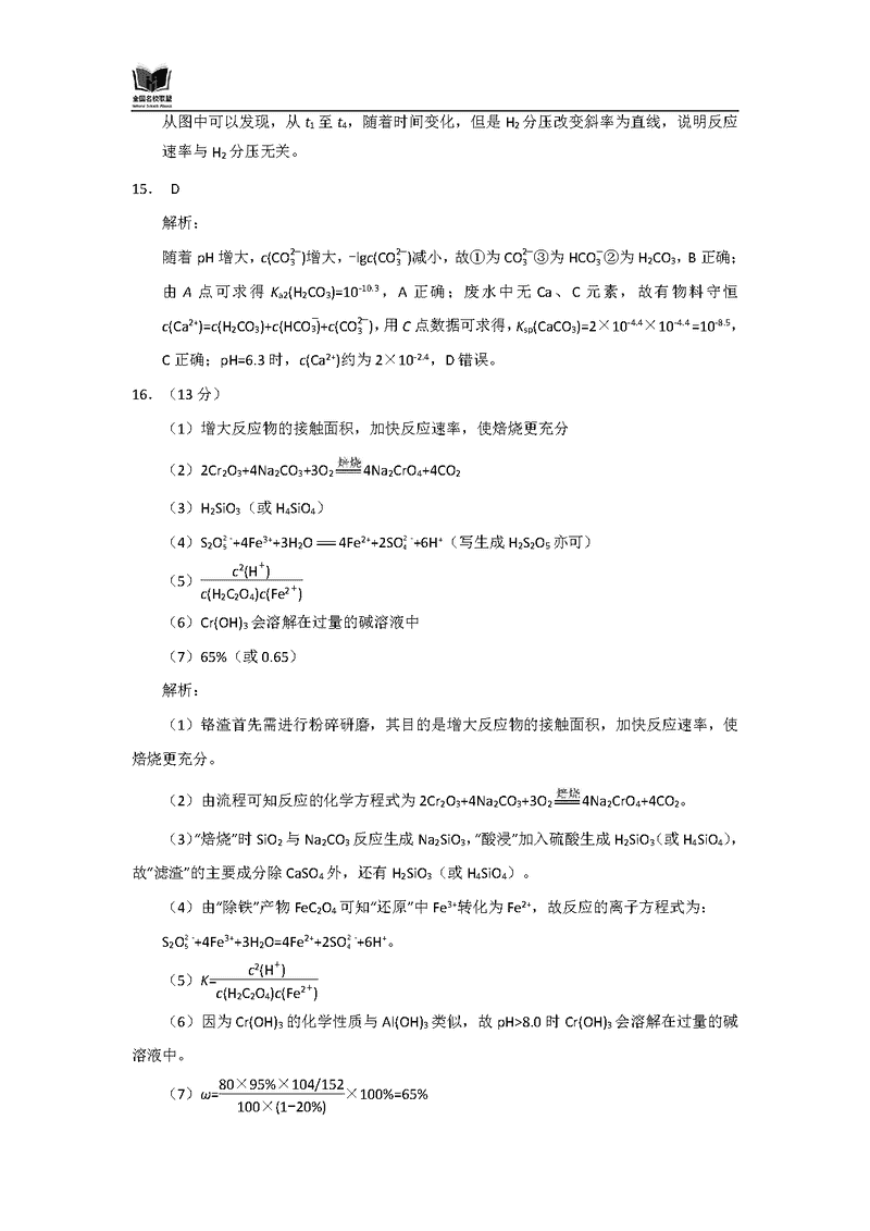 化学试题及答案解析