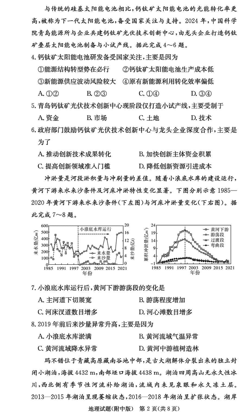 湖南师大附中2026届高三上学期8月月考(一)地理试题及答案