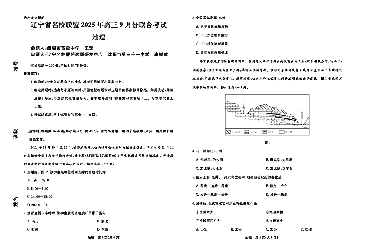 辽宁名校联盟2025年高三9月联考地理试题及答案