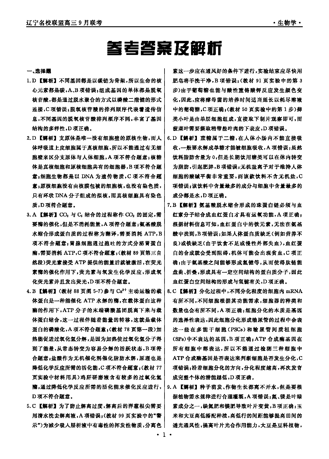 辽宁名校联盟2025年高三9月联考生物考试已于近日开考,为方便考生考后及时查看考试情况,查漏补缺、弥补不足,本文整理了试题答案解析相关信息!