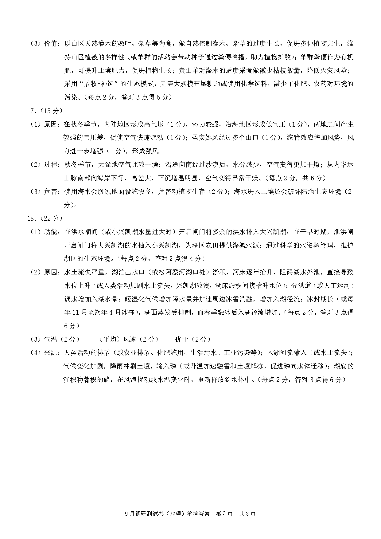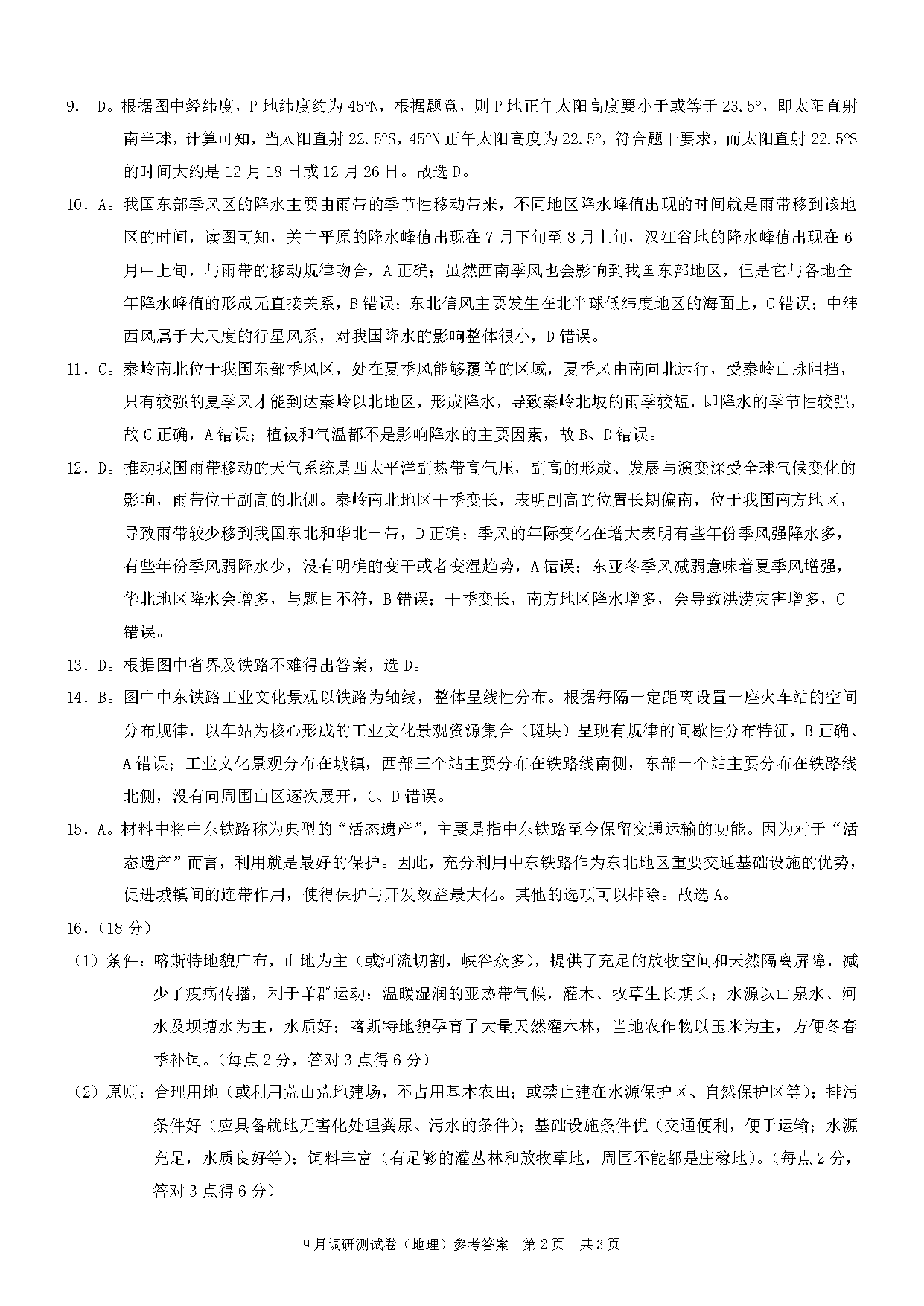 重庆康德卷2026年高三上学期9月调研地理试题及答案
