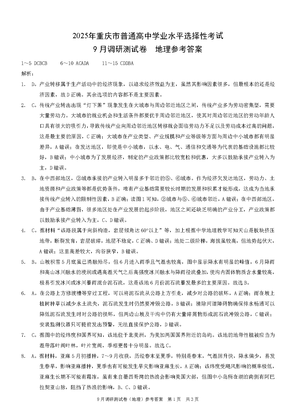 重庆康德卷2026年高三上学期9月调研地理考试已于近日开考,为方便考生考后及时查看考试情况,查漏补缺、弥补不足,本文整理了试题答案解析相关信息!
