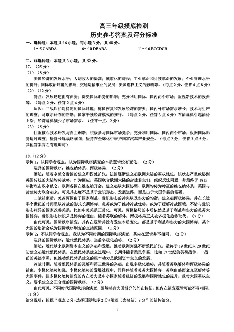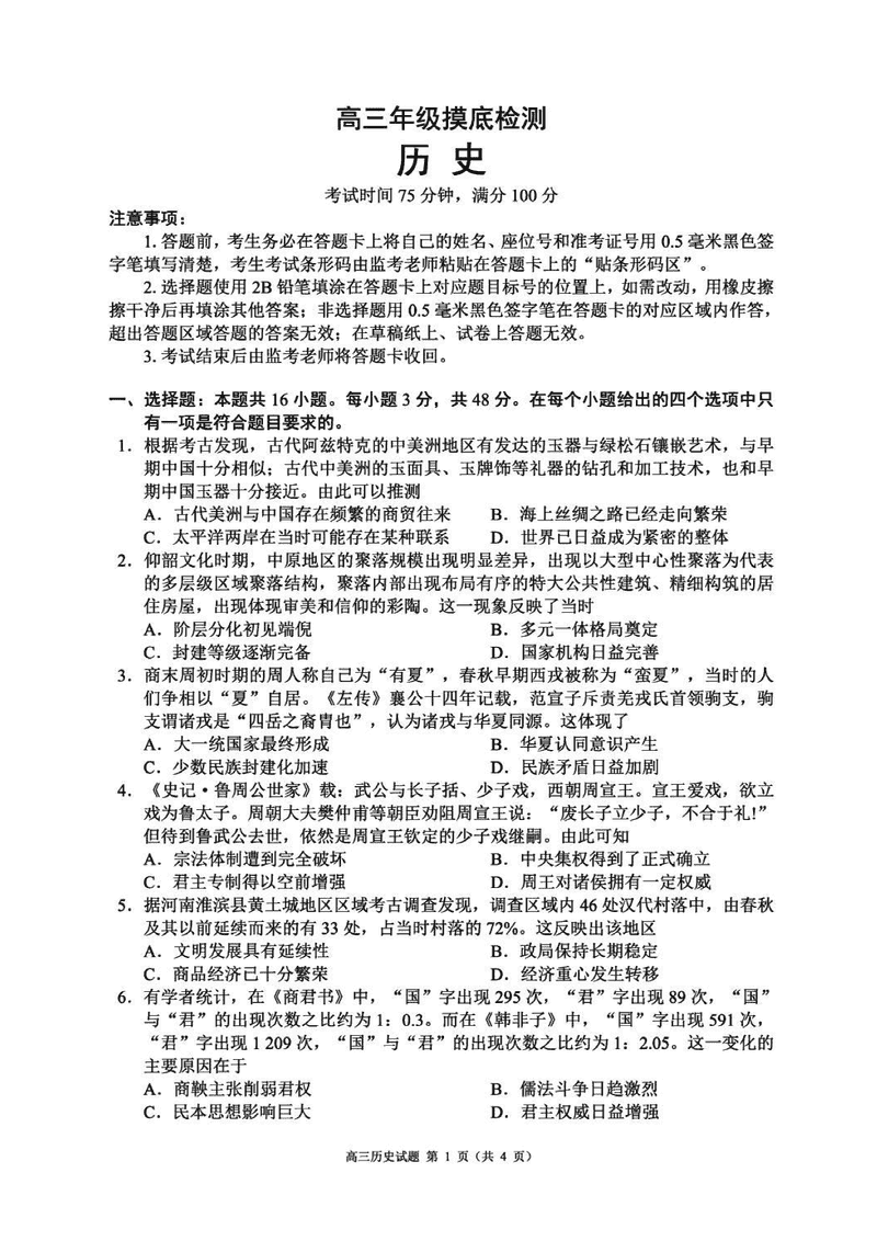 四川蓉城名校联盟2025-2026学年高三上学期开学摸底历史试题及答案
