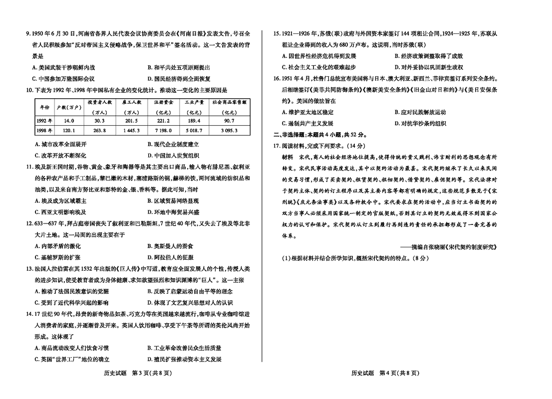 河南天一大联考2025-2026学年高三上学期开学考历史试题及答案