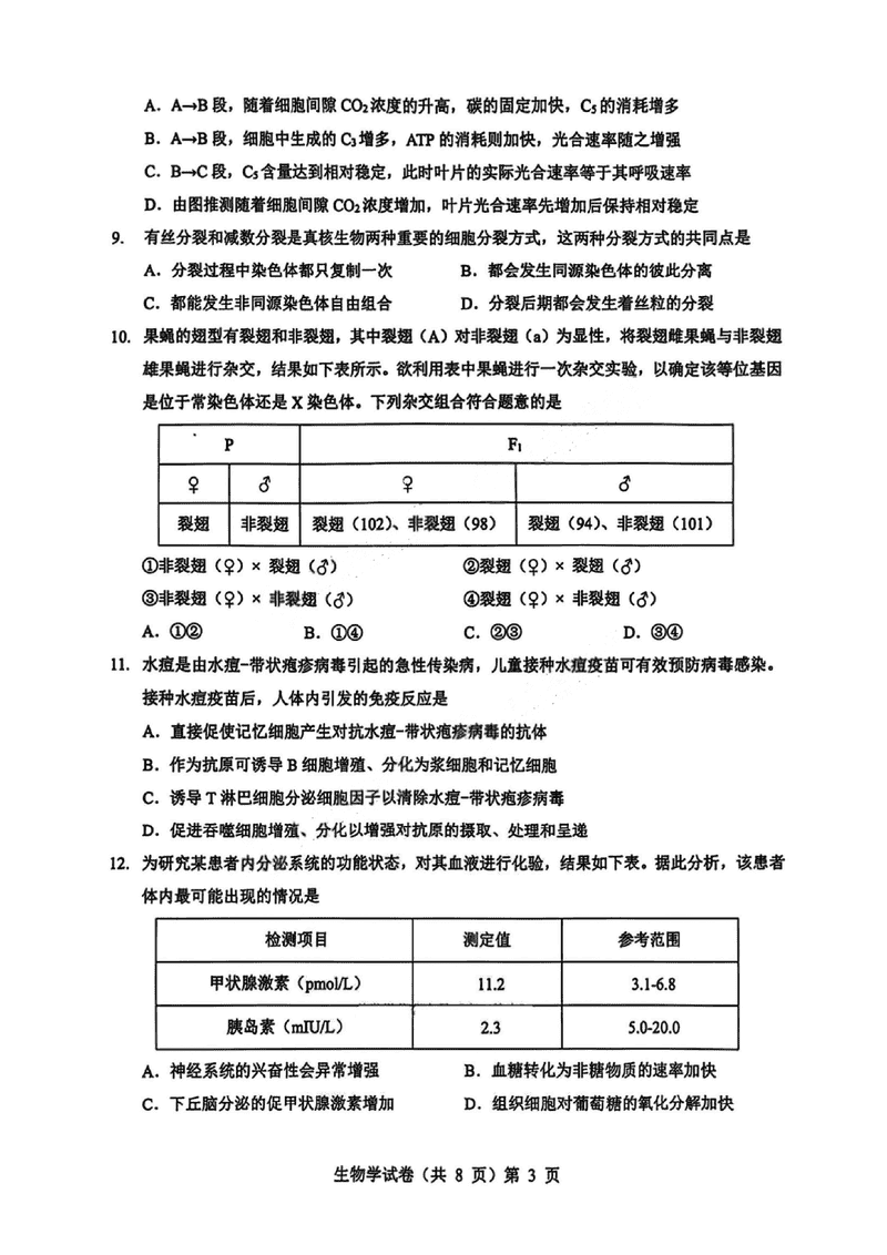 湖北楚天协作体2025-2026学年高三上9月起点生物试题及答案