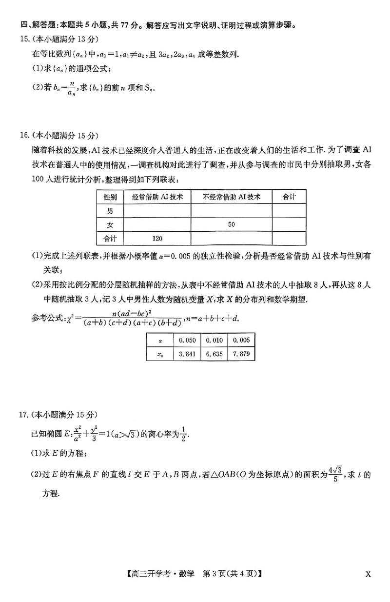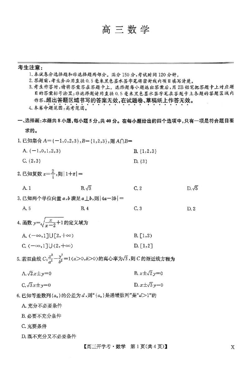 河南九师联盟2026届高三上学期9月联考数学试题及答案